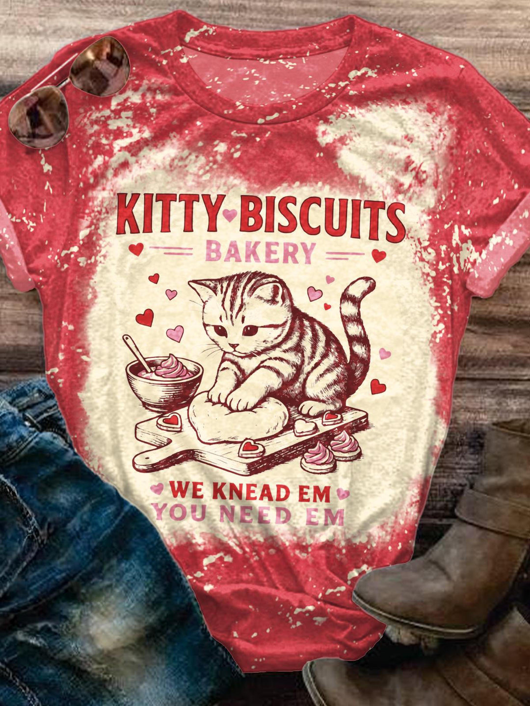 Valentine's Day Retro Fun Kitten Crew Neck T-shirt