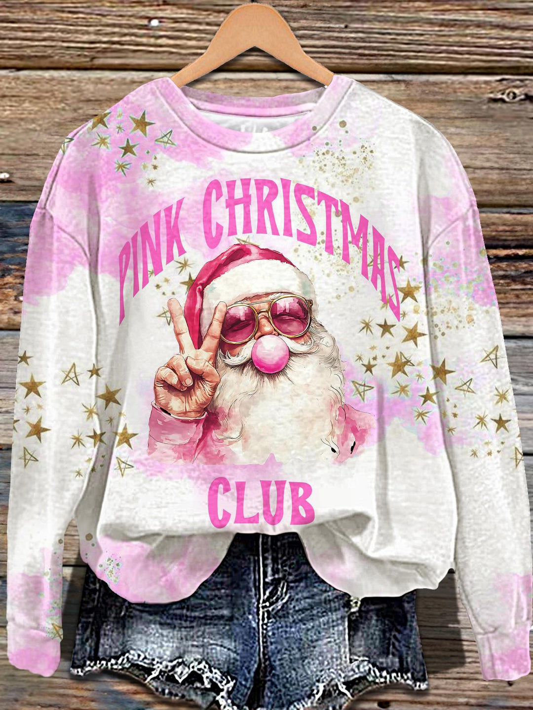 Pink Christmas Club Printed Long Sleeve Casual Top