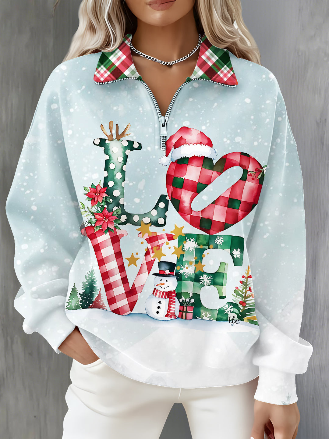 LOVE Snow Scene Long Sleeve Zipper Sweatshirt