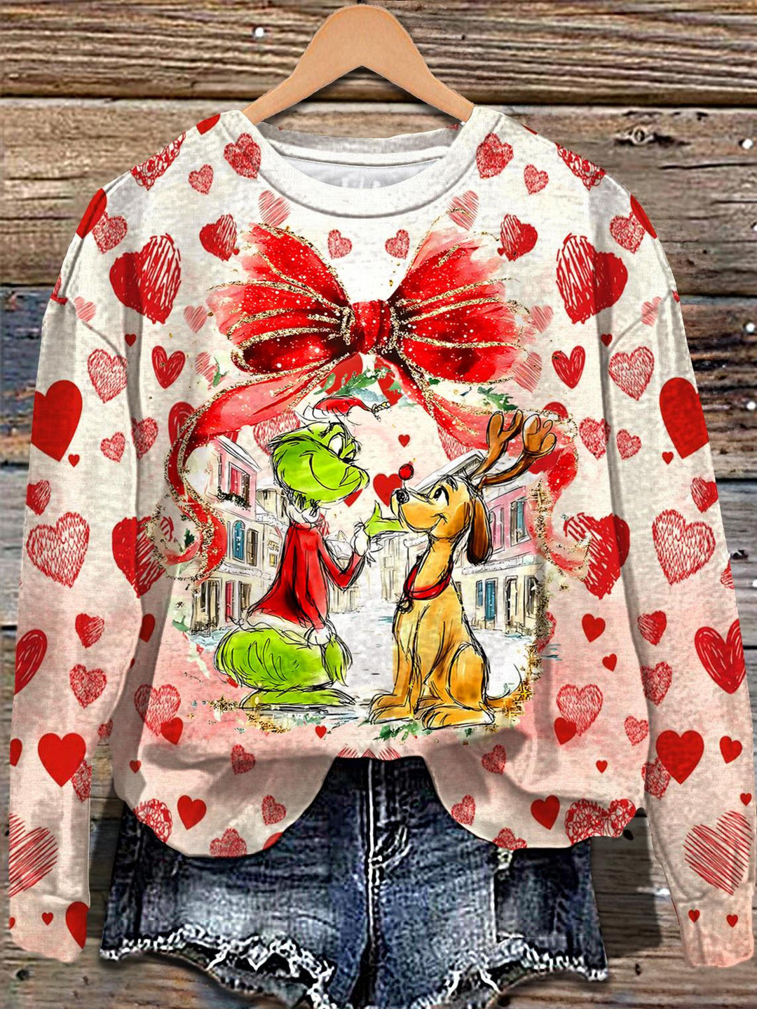 Christmas Cute Grinch Print Long Sleeve Casual Top