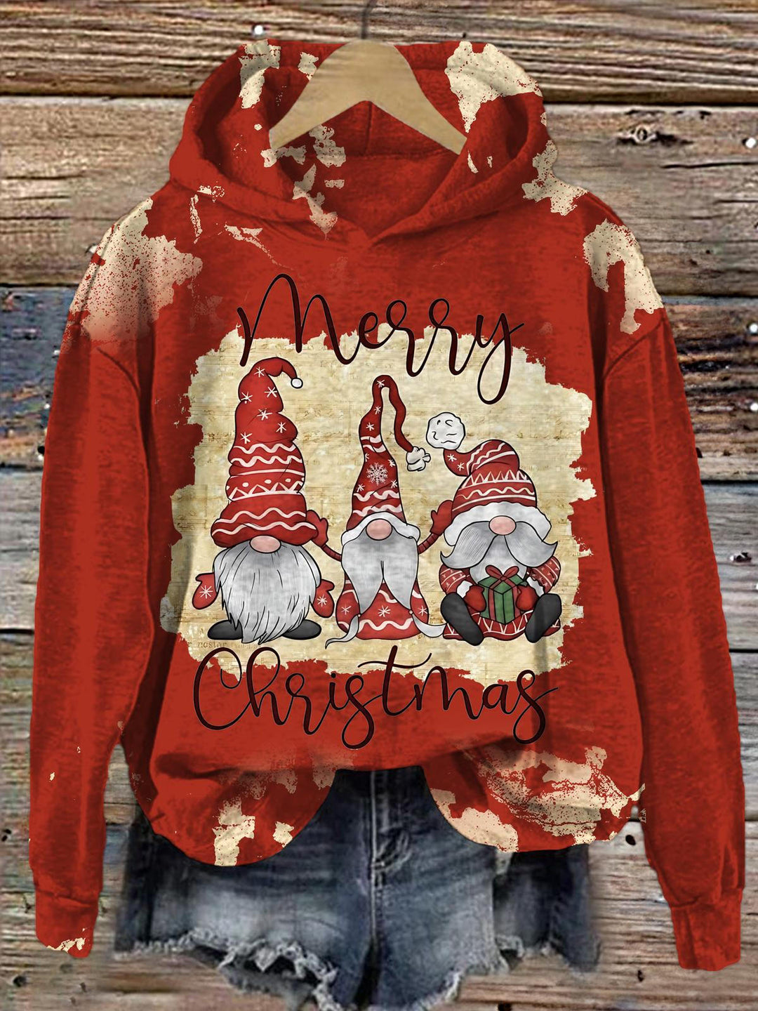 Retro Christmas Dwarf Long Sleeve Printed Hoodie