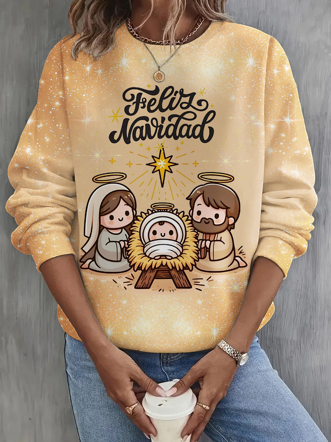 Cute Snowman and Elk Printed Long Sleeve Casual Top