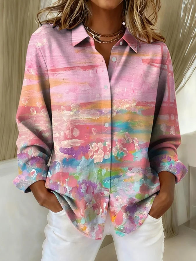 Women's Casual Retro Pink Oil Painting Shirt