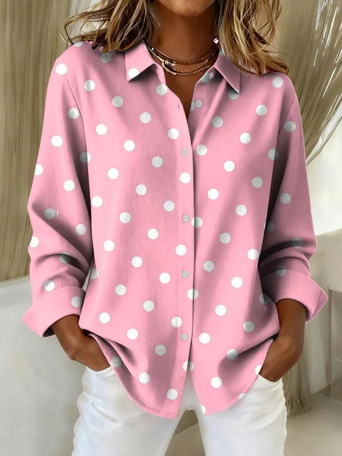Women's Casual Retro Pink Polka Dot Shirt