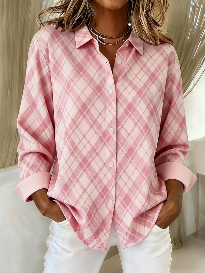 Women's Casual Retro Pink Plaid Shirt