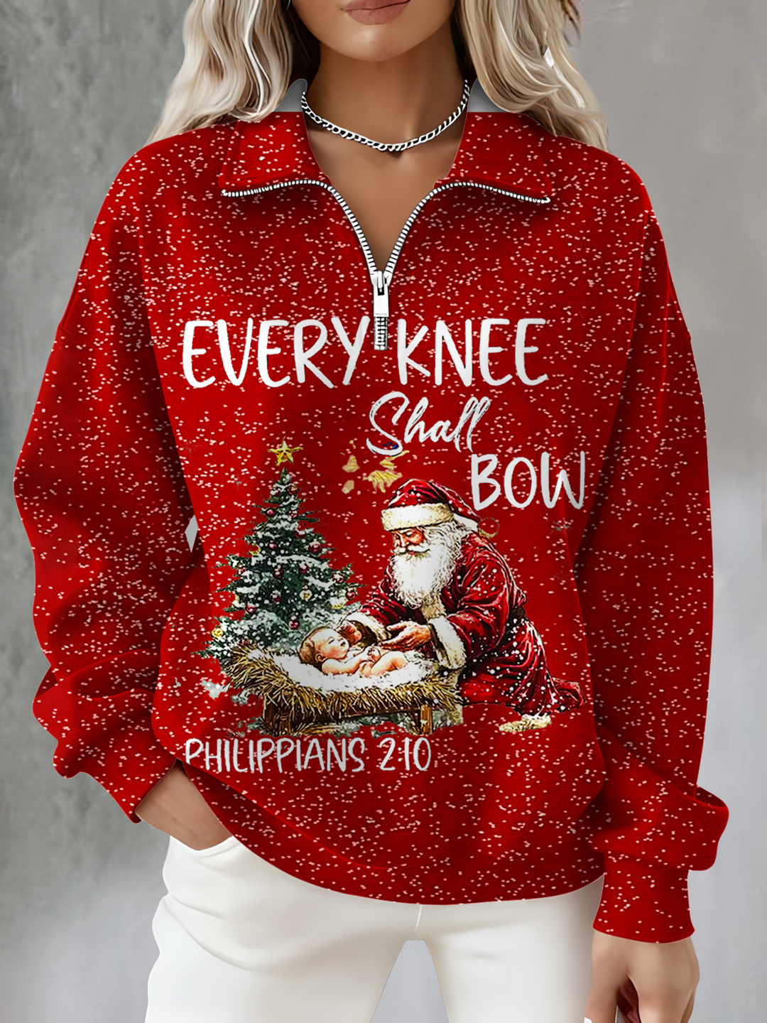Christmas Jesus Print Long Sleeve Zipper Sweatshirt