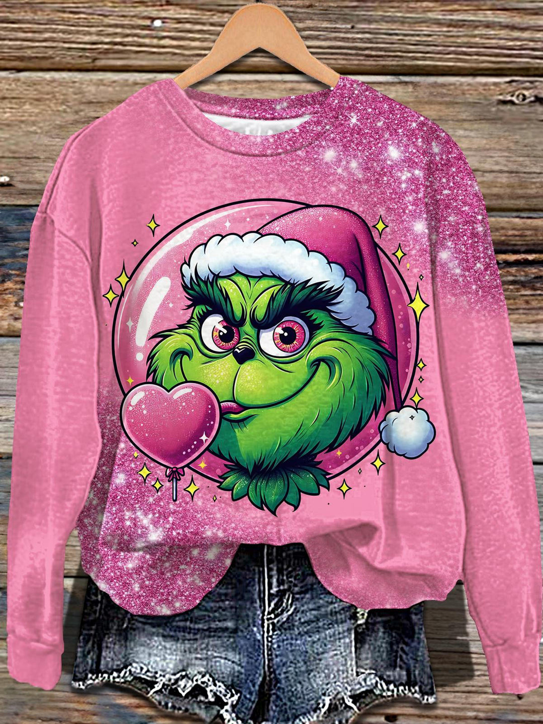Christmas Fun Grinch Printed Long Sleeve Casual Top