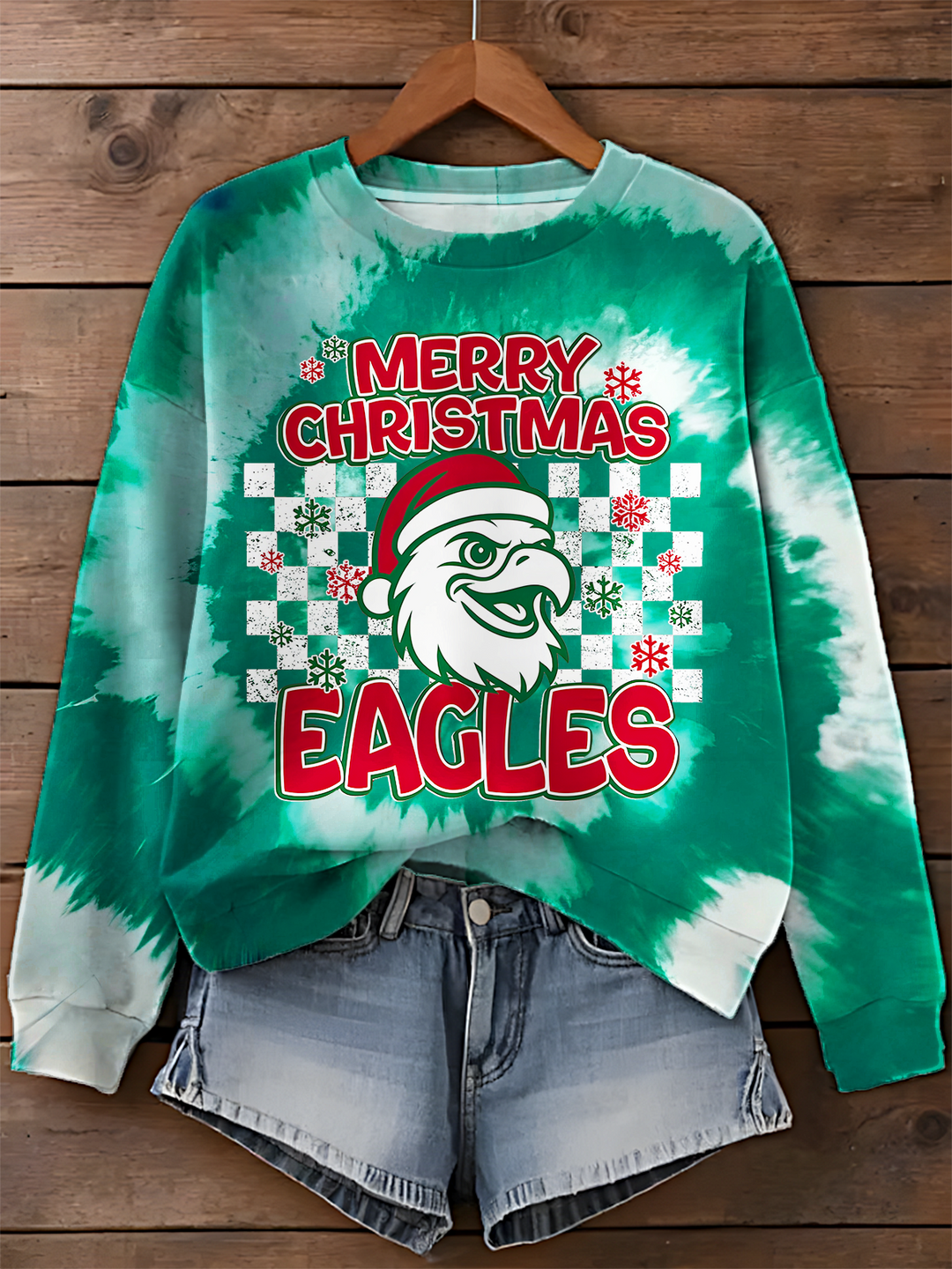 Eagle Mascot Christmas Printed Long Sleeve Casual Top