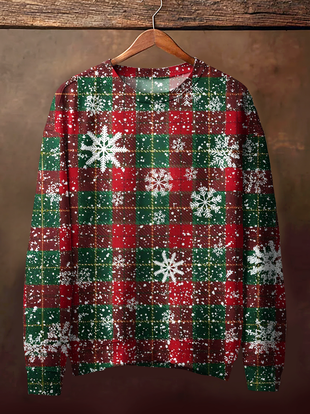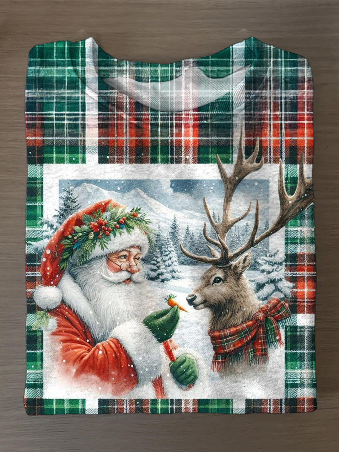 Christmas Retro Grid Printed Long Sleeve Casual Top