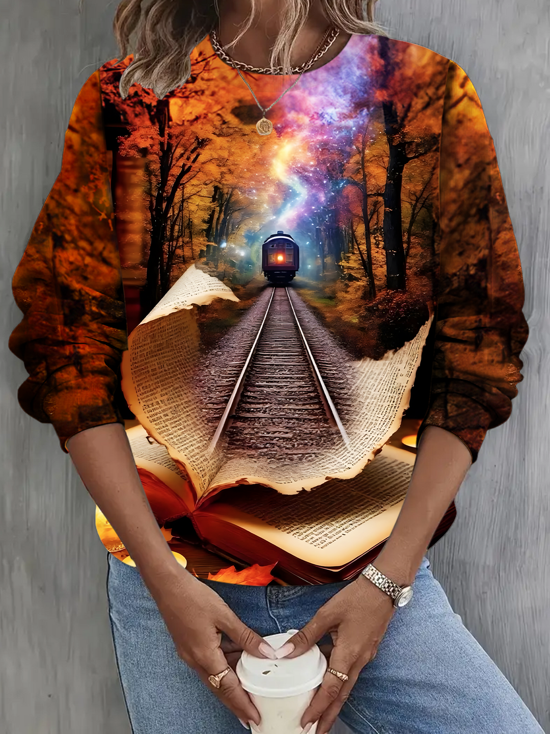 Autumn and Winter Book Train Long Sleeve Casual Top