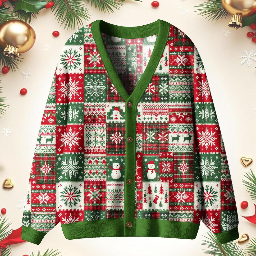 Retro Snowflake Grid Unisex Ugly Cardigan Sweaters
