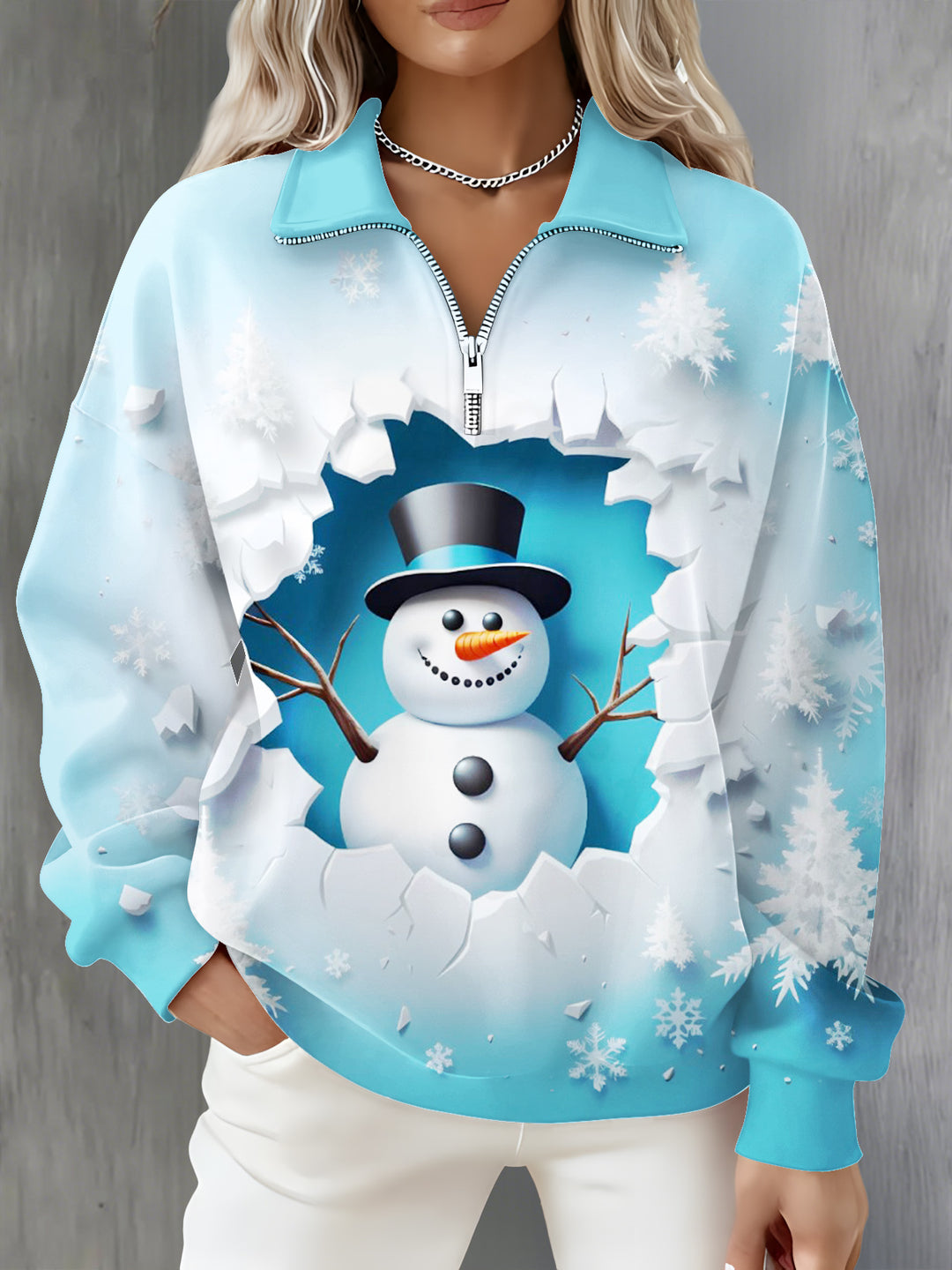 Snowman Long Sleeve Zipper Sweatshirt