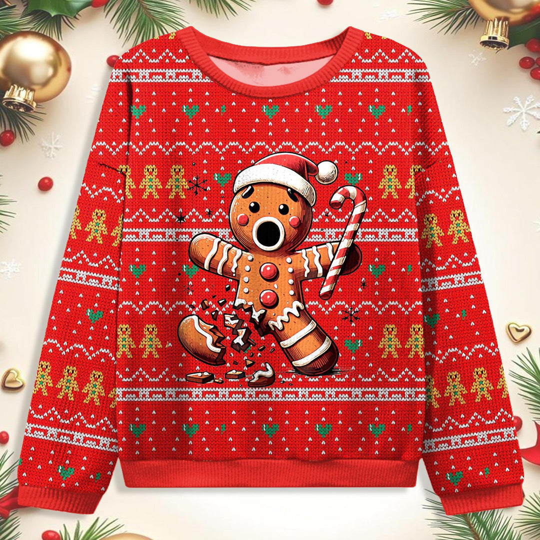 Women's Christmas Gingerbread Man Round Neck Ugly Sweater