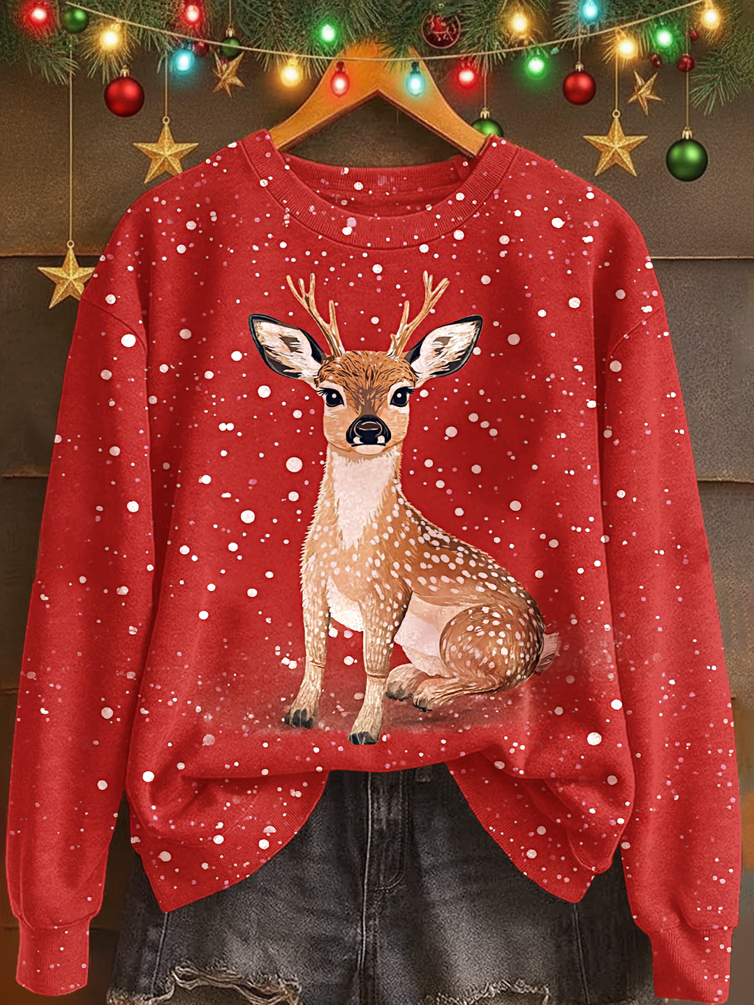 Christmas Reindeer Printed Long Sleeve Casual Top