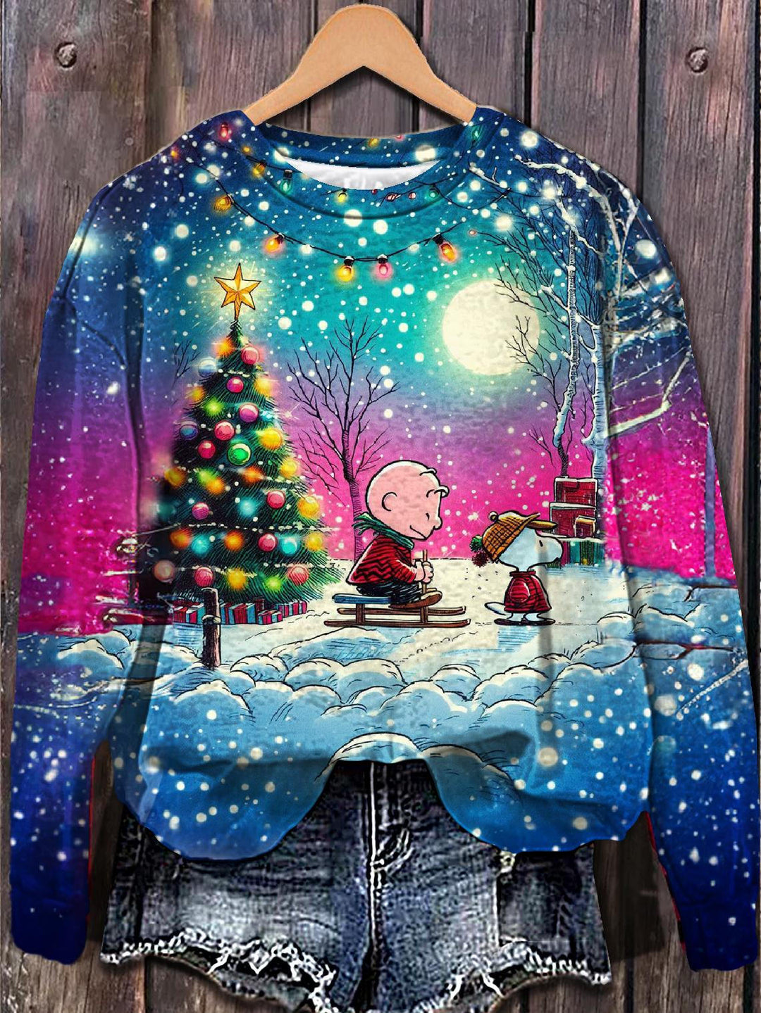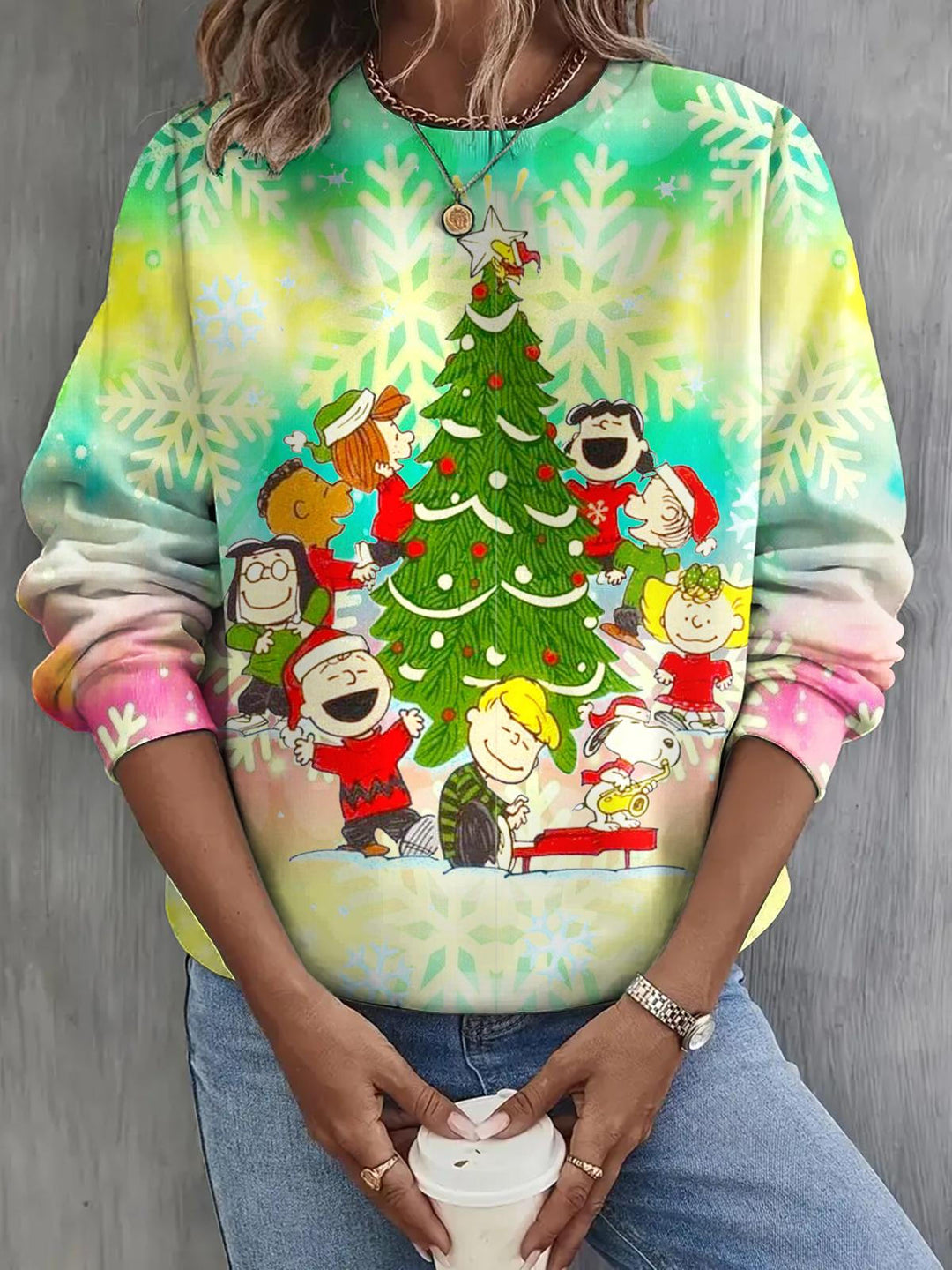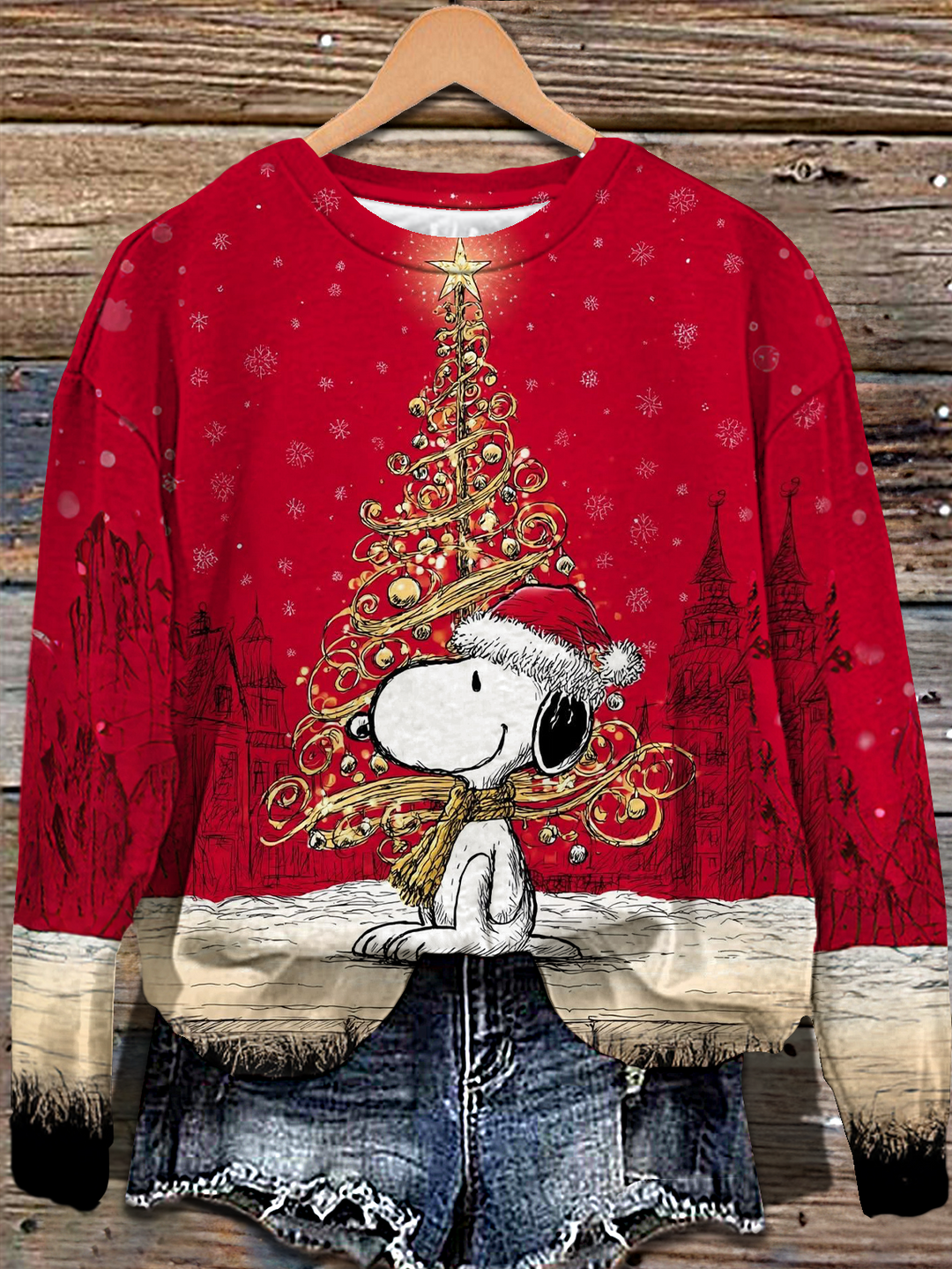 Retro Christmas Tree Snoopy Printed Long Sleeve Casual Top