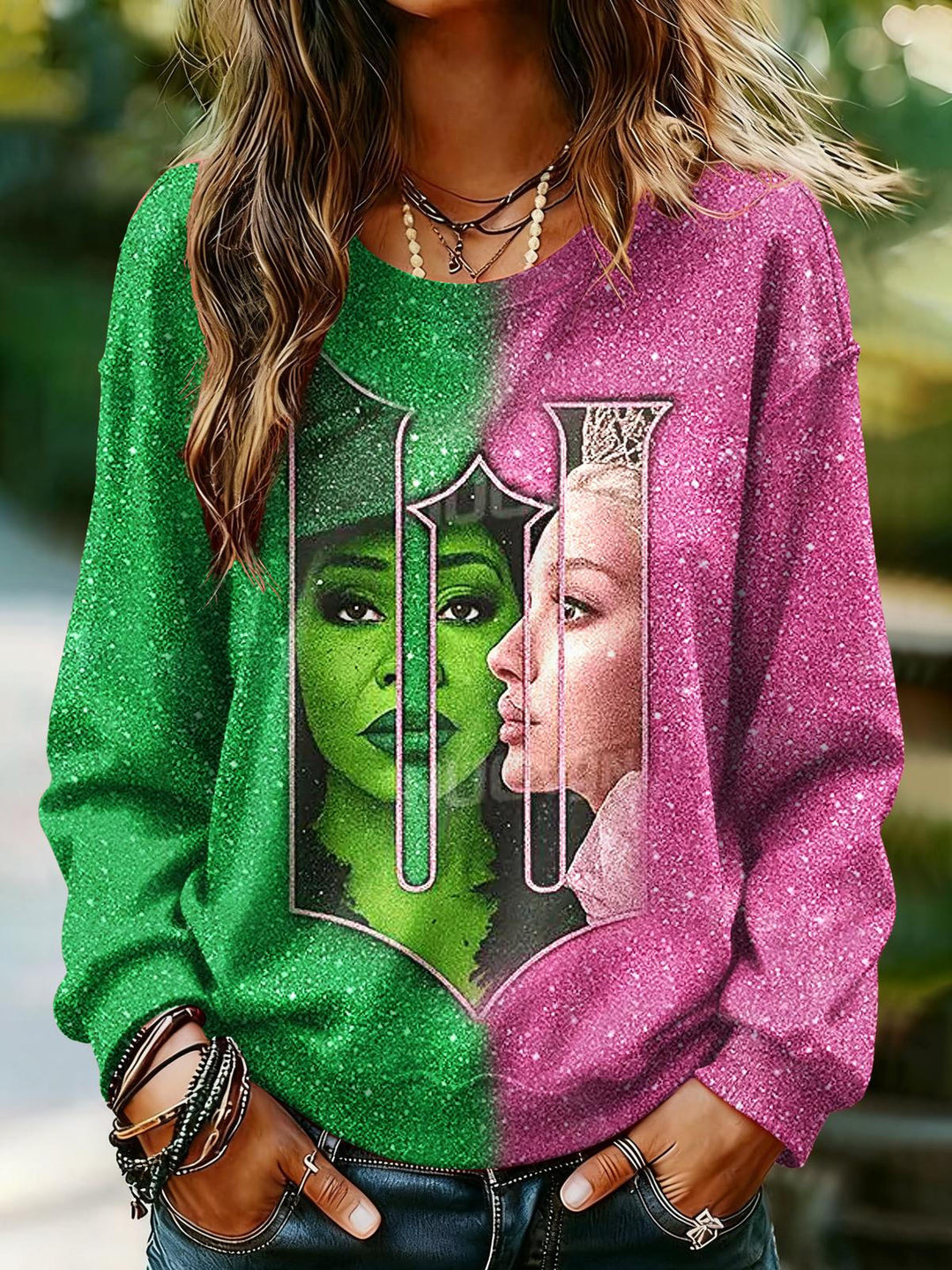 Elphaba and Glinda Women's Round Neck Ugly Sweater