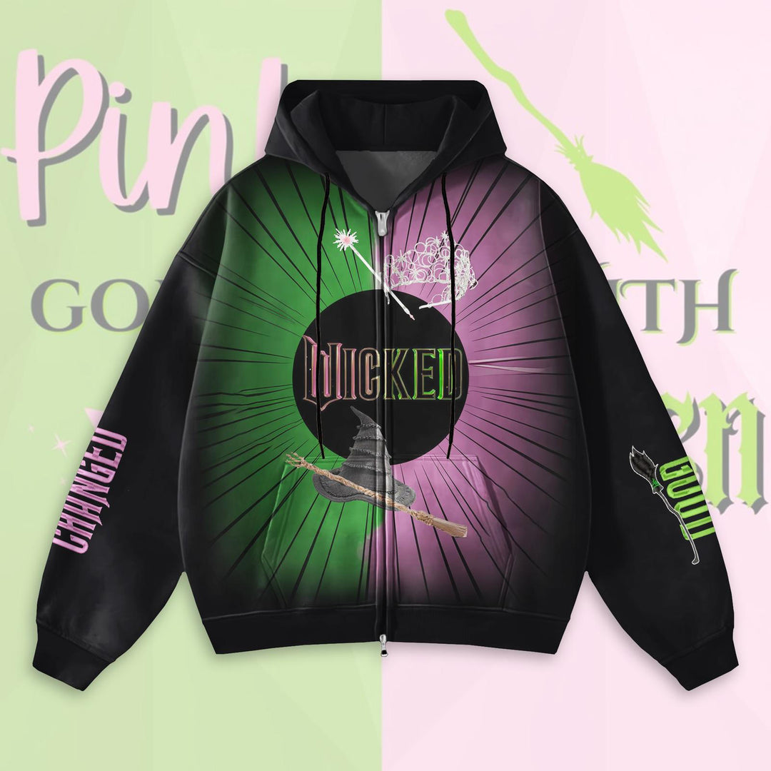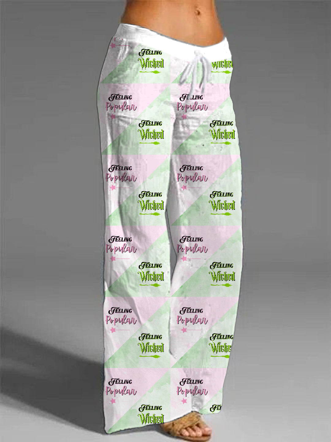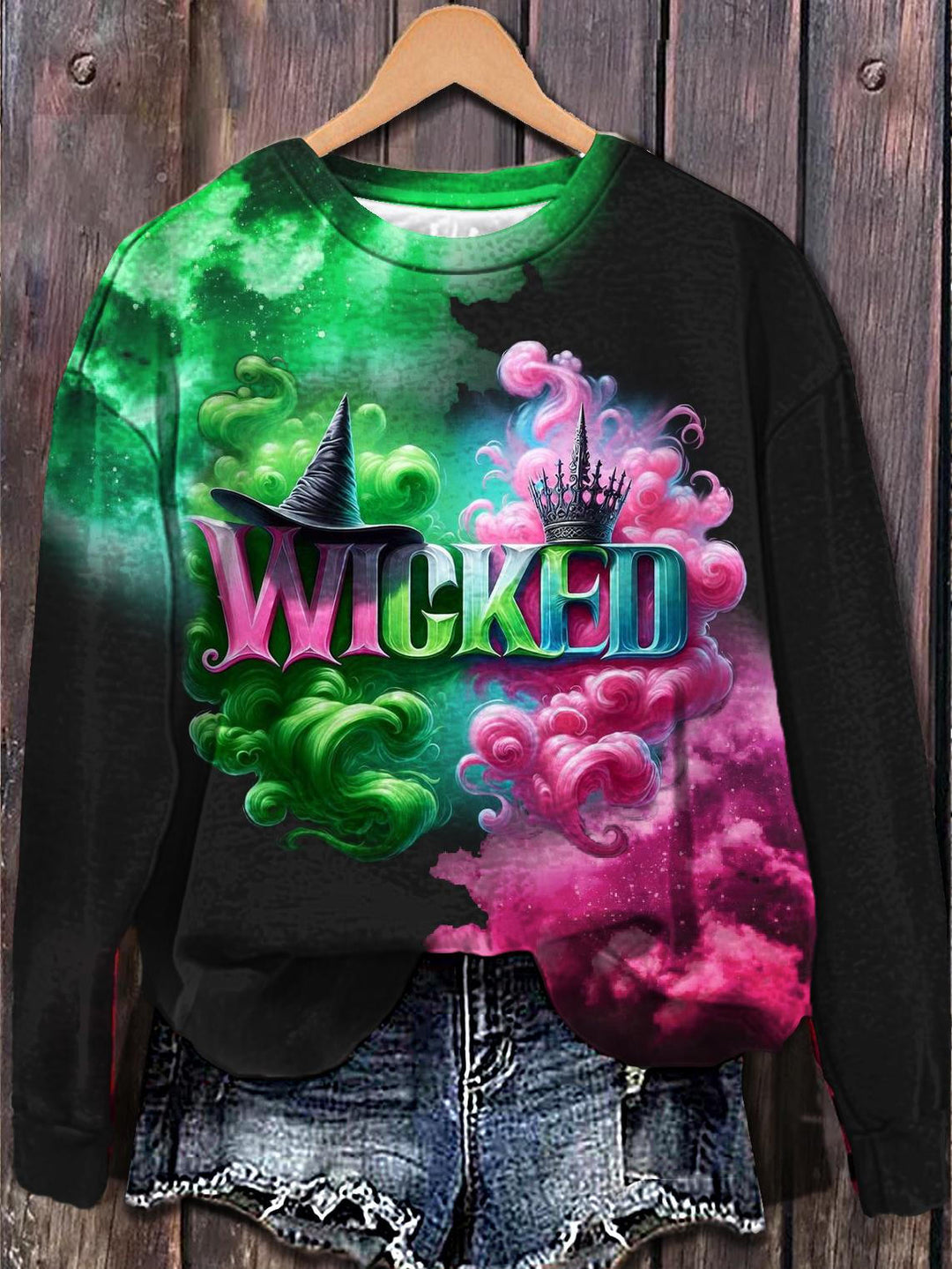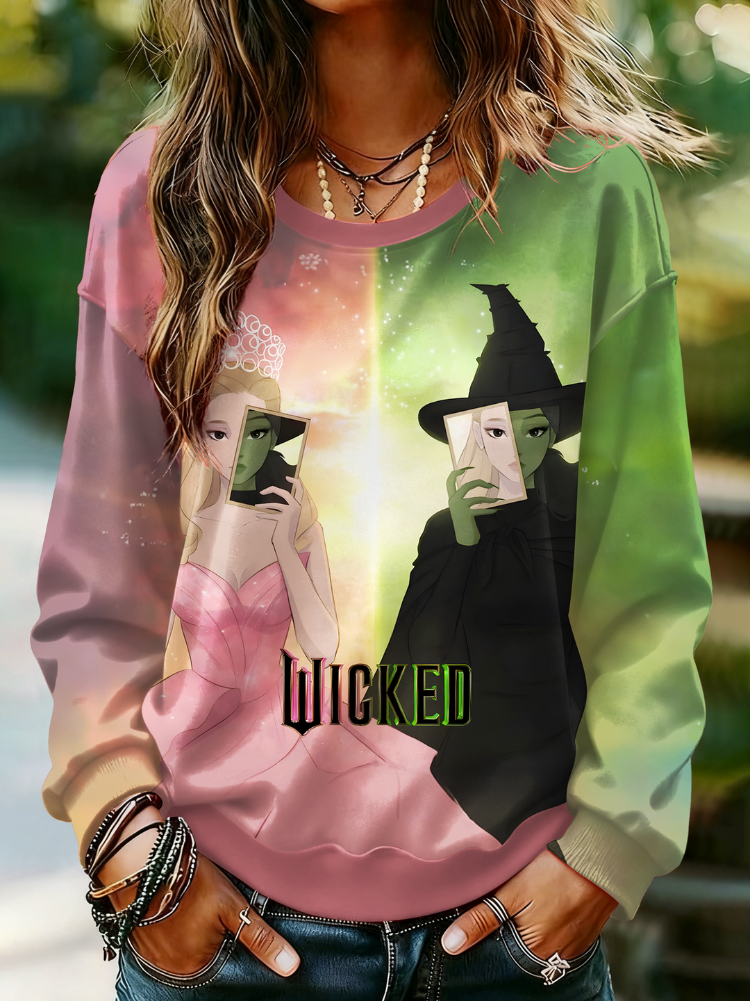Retro Wicked For Good Print V-Neck Long Sleeve Top