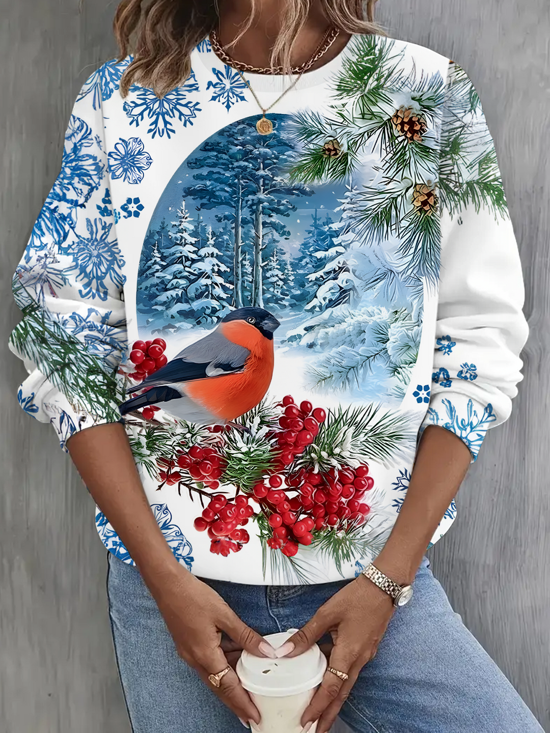 Winter Christmas Cardinal Long Sleeve Casual Top