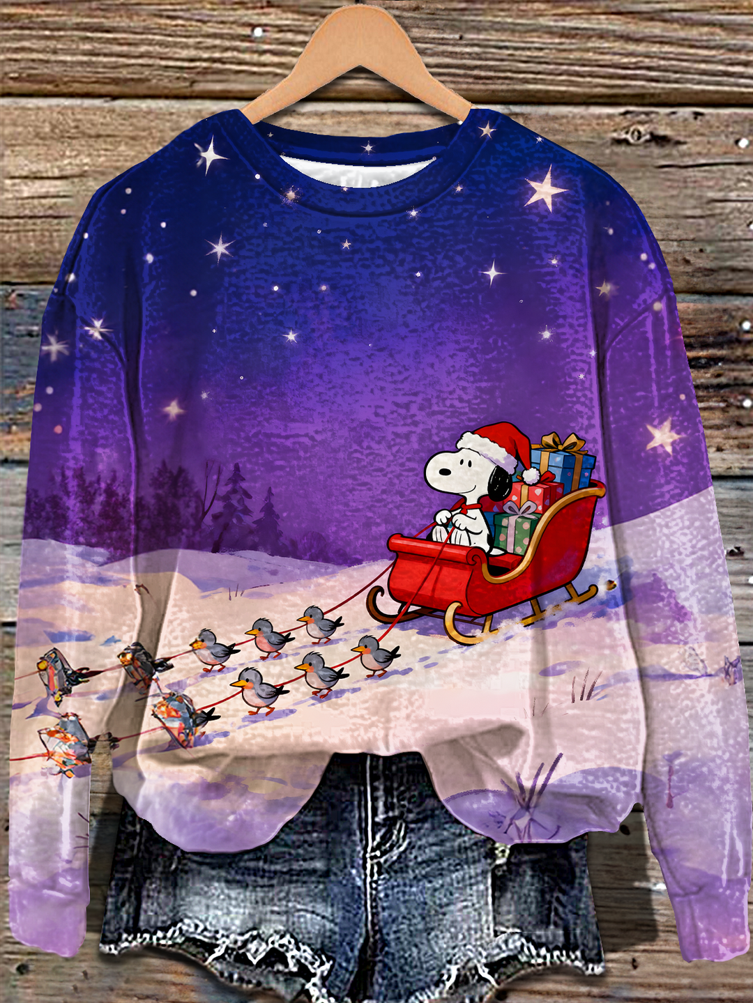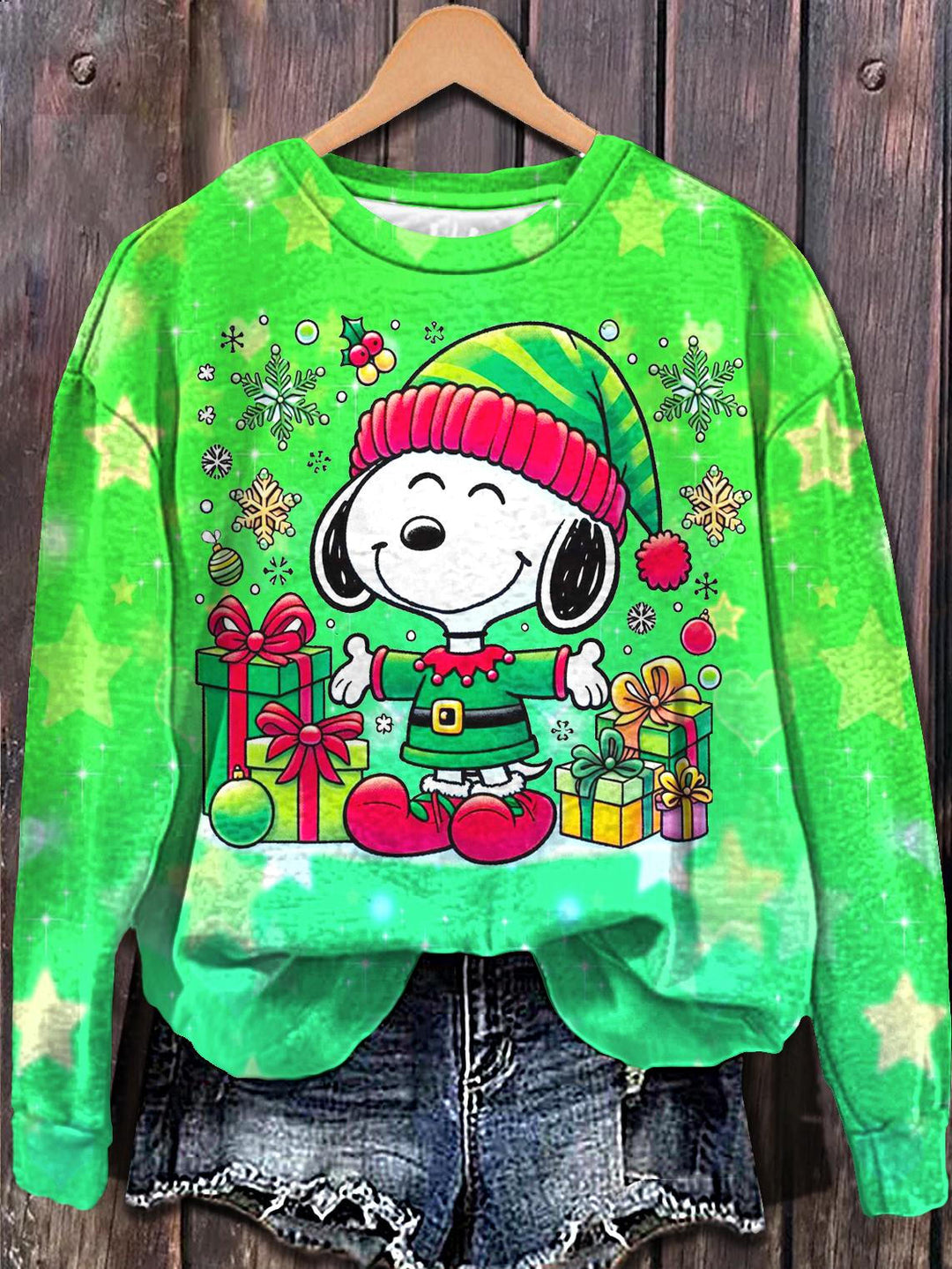 Christmas Retro Snoopy Printed Long Sleeve Casual Top