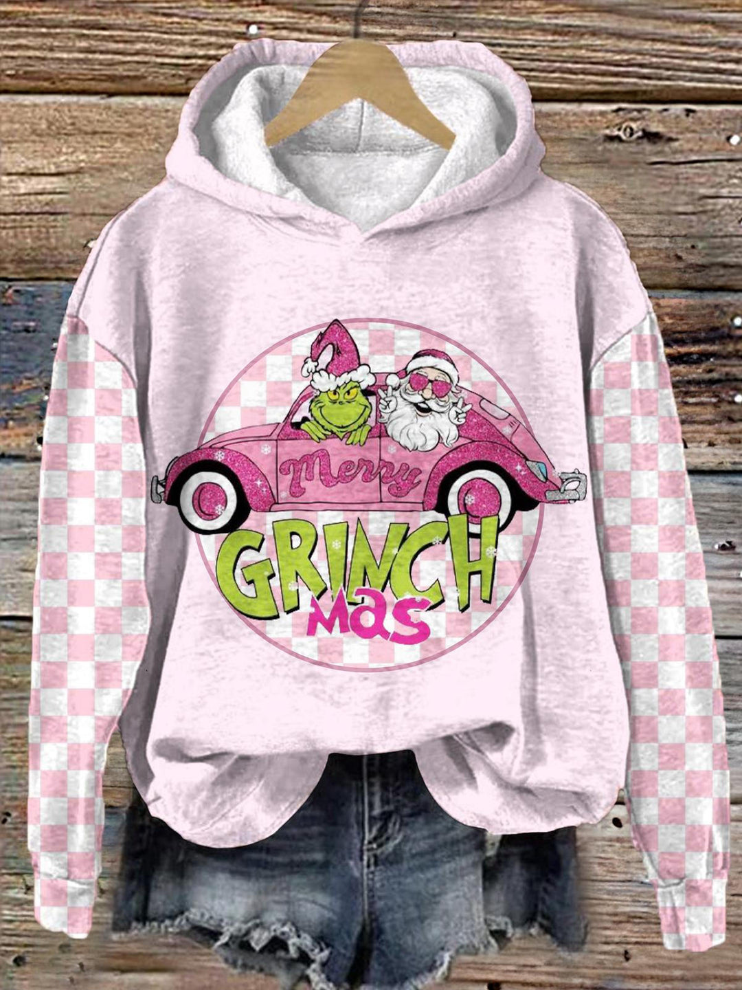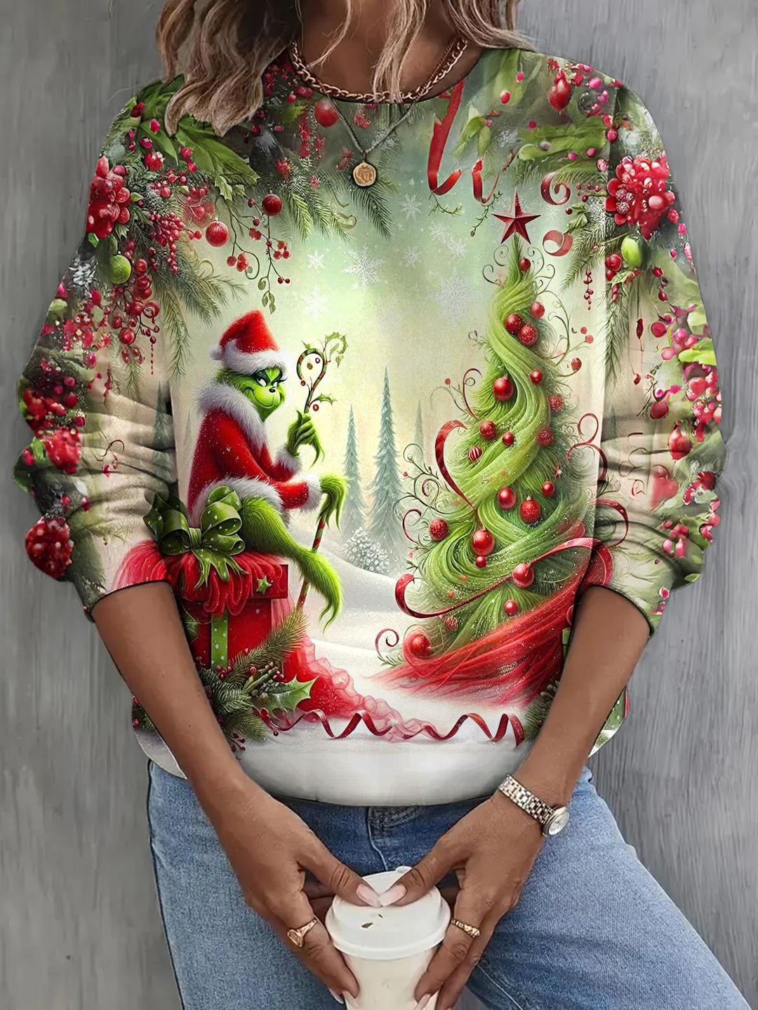 Christmas Retro Grinch Print Long Sleeve Casual Top