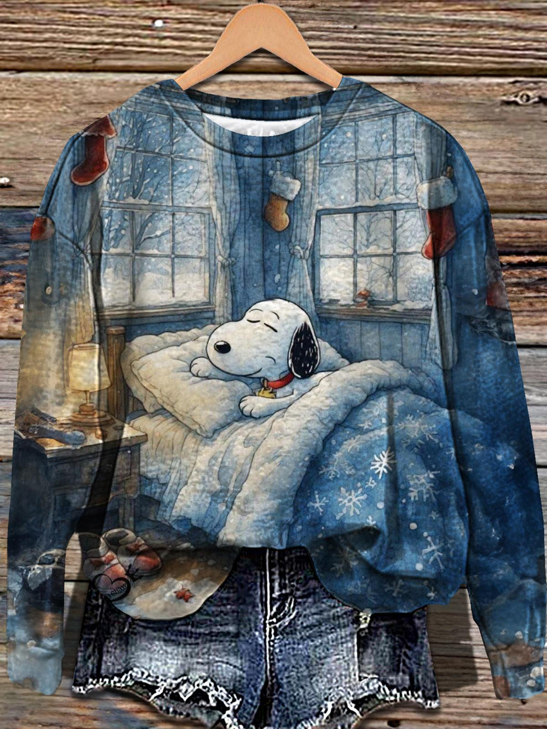 Cozy Christmas with Snoopy Printed Long Sleeve Casual Top