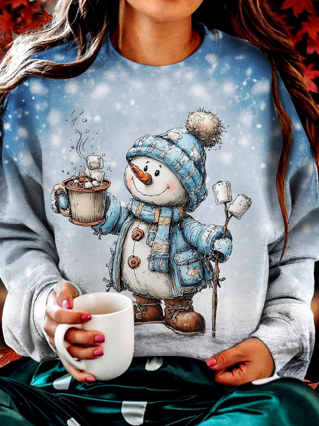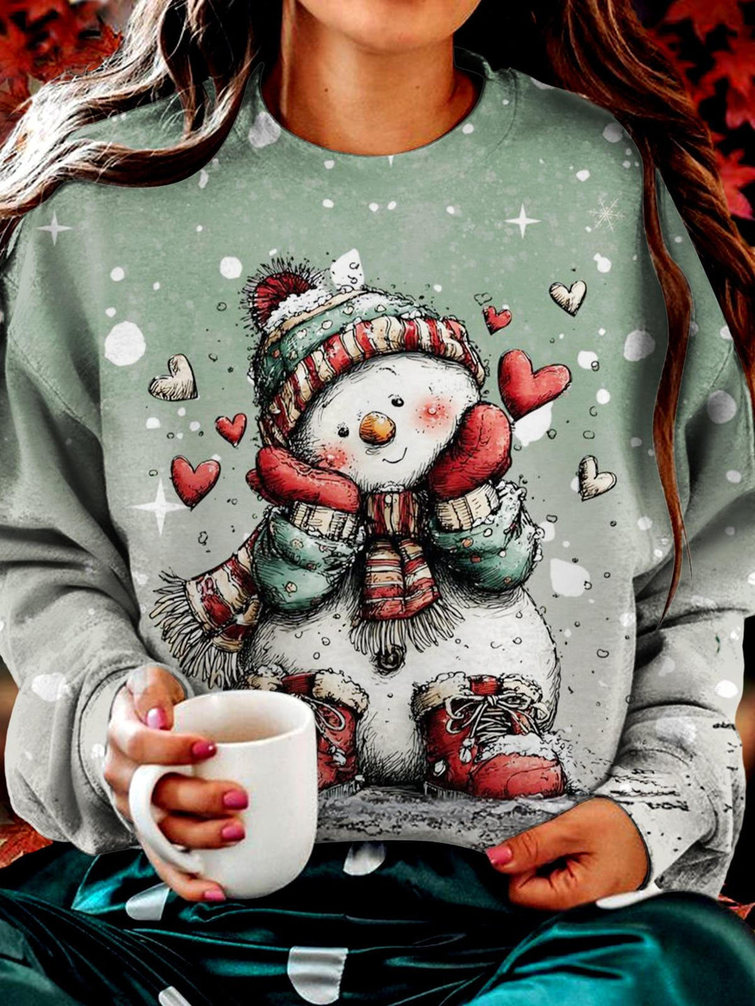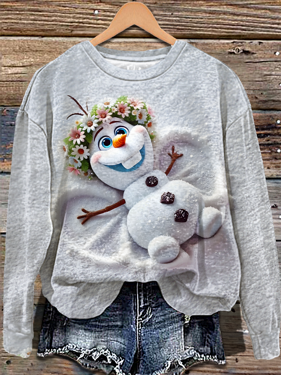 Fun Winter Snowman Printed Long Sleeve Casual Top