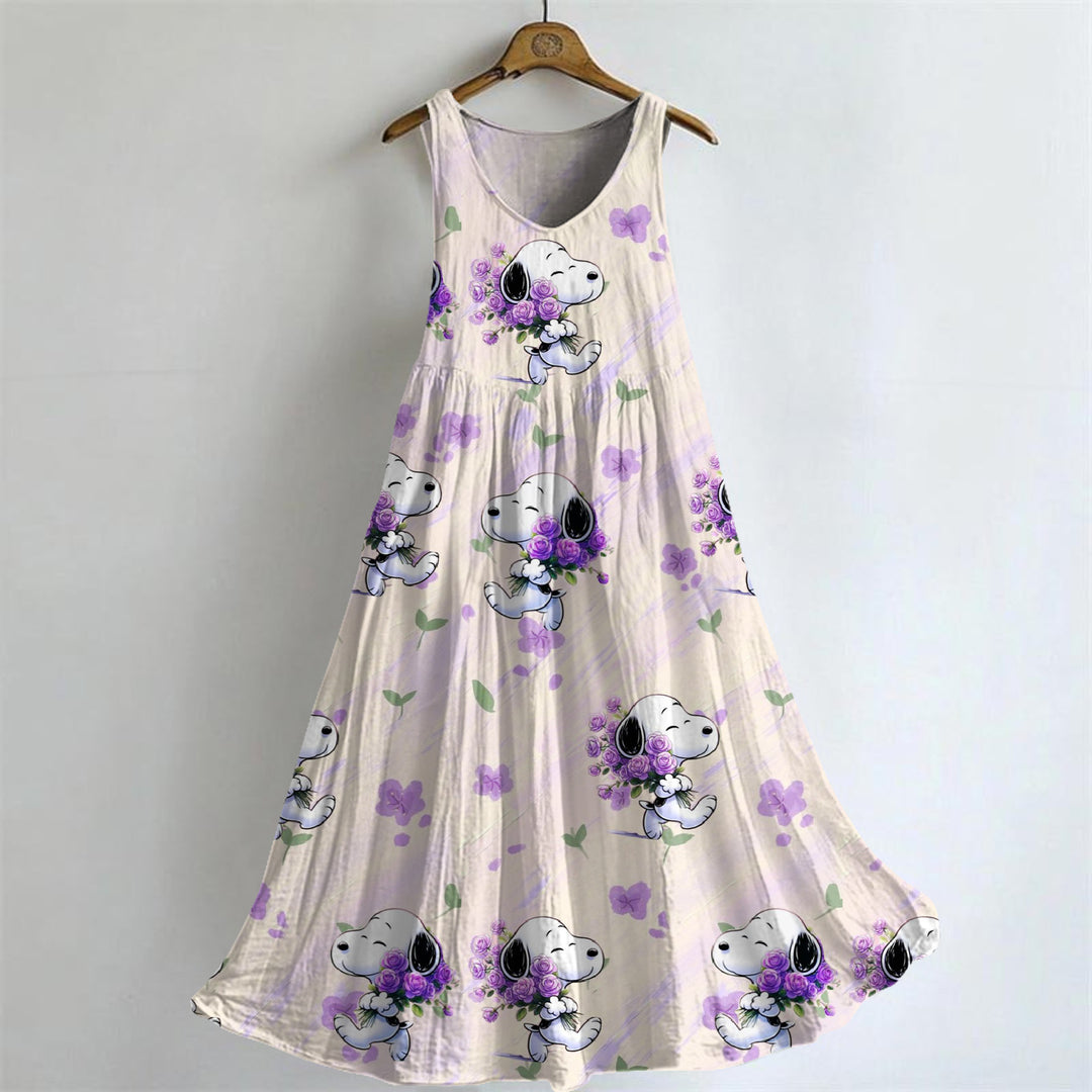 Snoopy Bouquet Exquisite Hemp Sleeveless V-Neck Dress