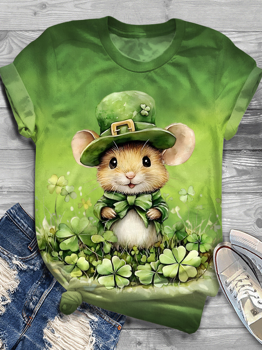 St. Patrick Rabbit Print Long Sleeve Casual Top
