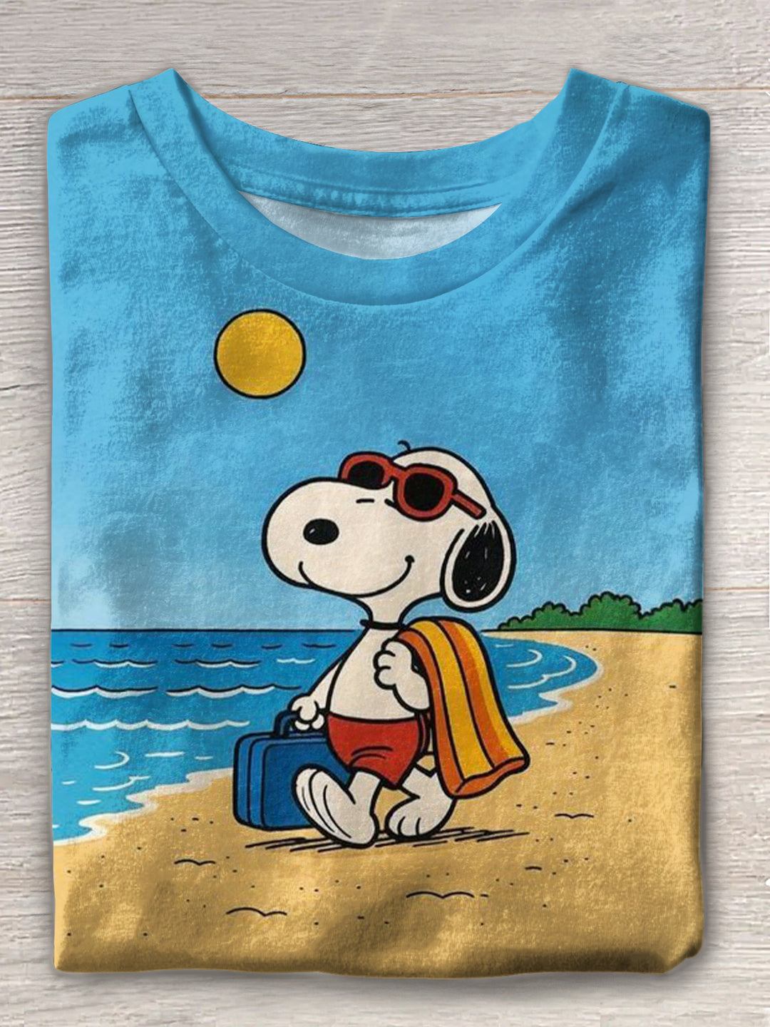 Chill On The Beach Peanuts Snoopy and Woodstock Crew Neck T-shirt