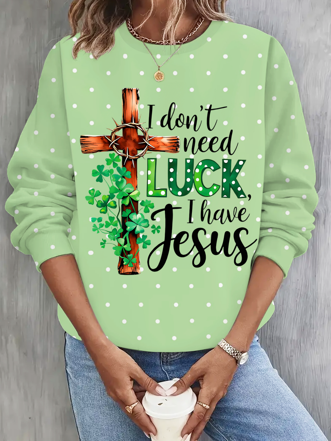 Christian St. Patrick's Day Clover Cross Long Sleeve Casual Top