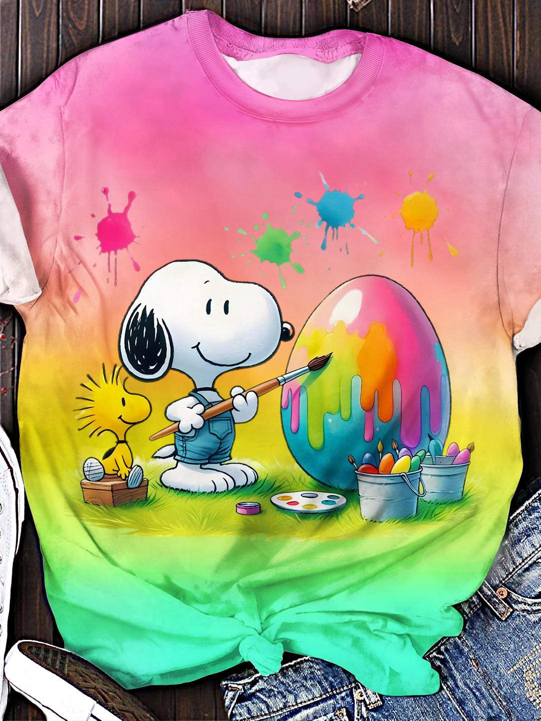 Tie Dye Snoopy Easter Egg Crew Neck T-shirt