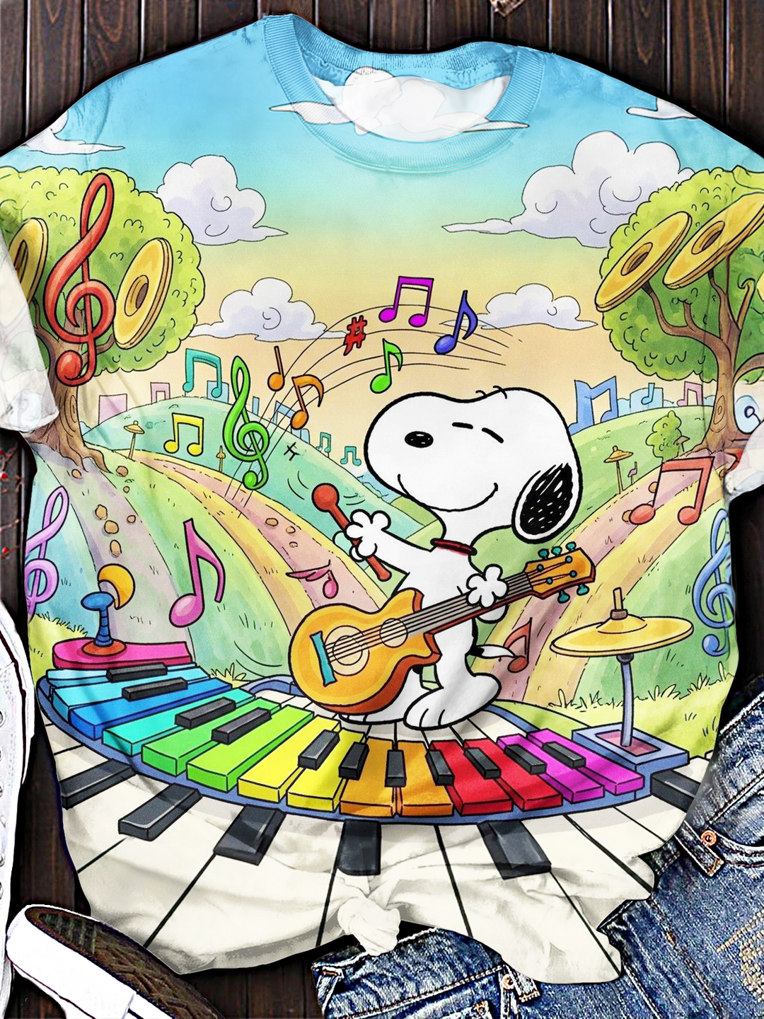 Cute Snoopy and Woodstock Music Party Crew Neck T-shirt