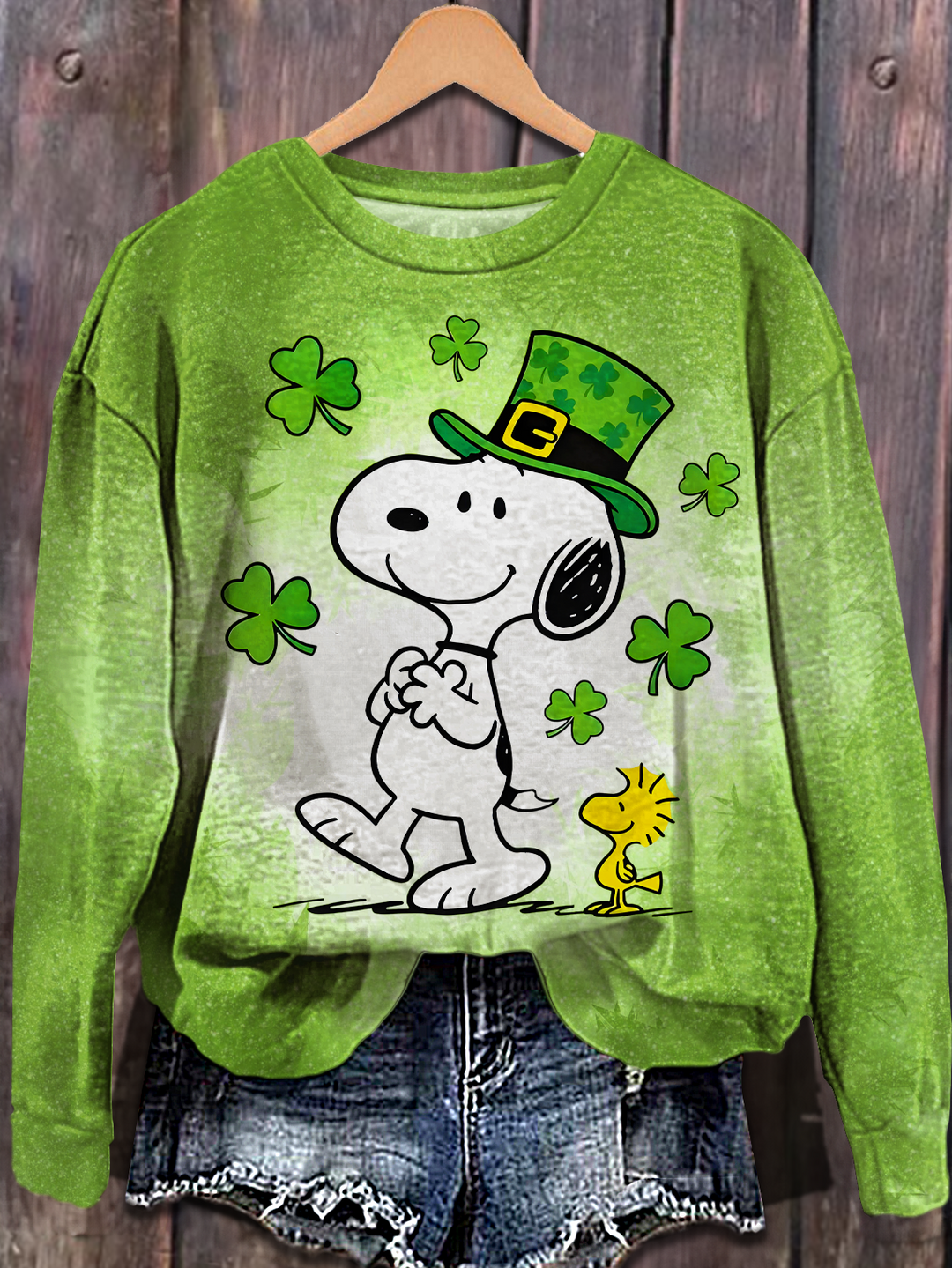 Snoopy Shamrock Peanuts St Patrick Day Printed Long Sleeve Casual Top