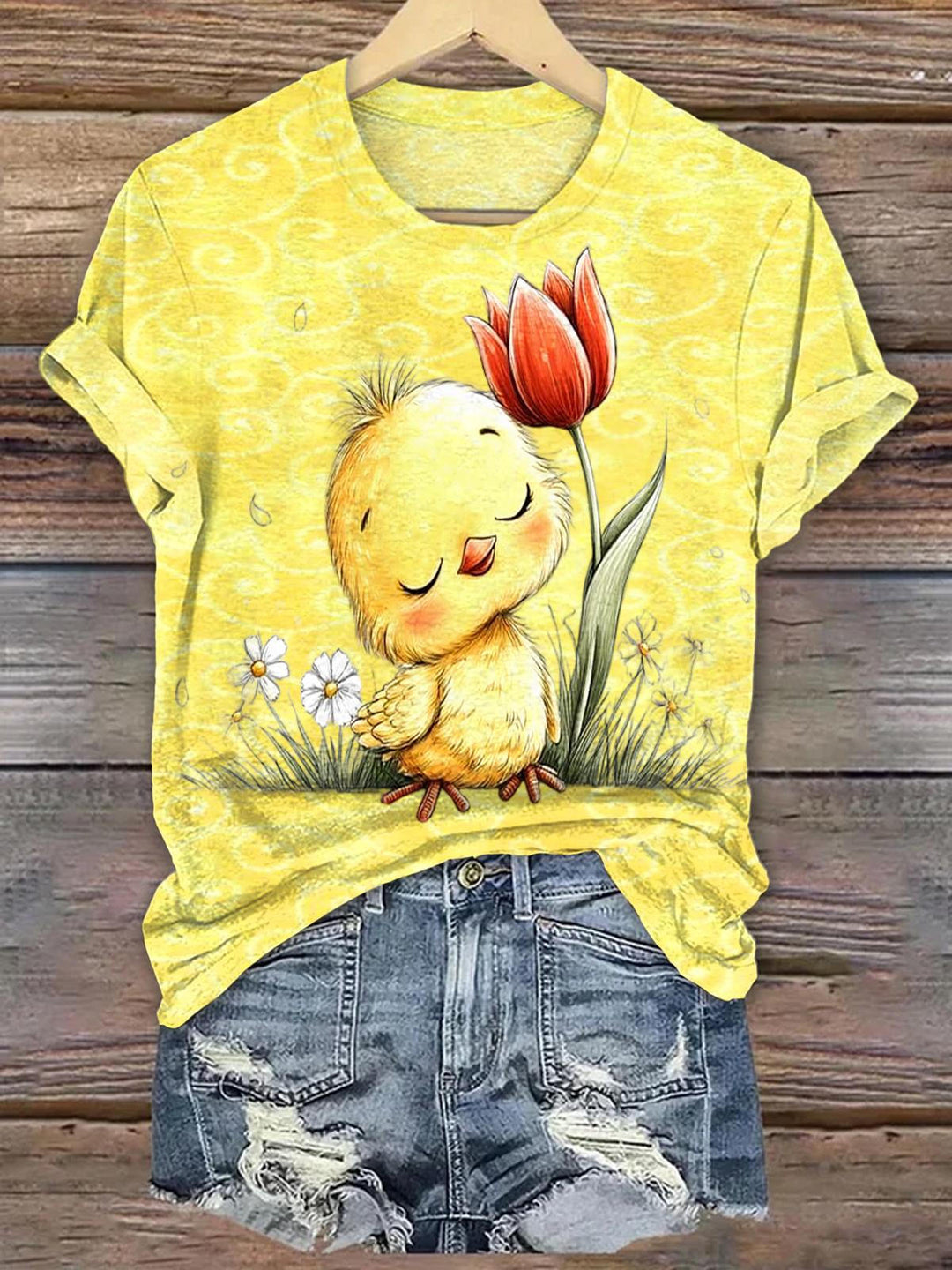 Easter Day Cute Bunny Print Crew Neck T-shirt