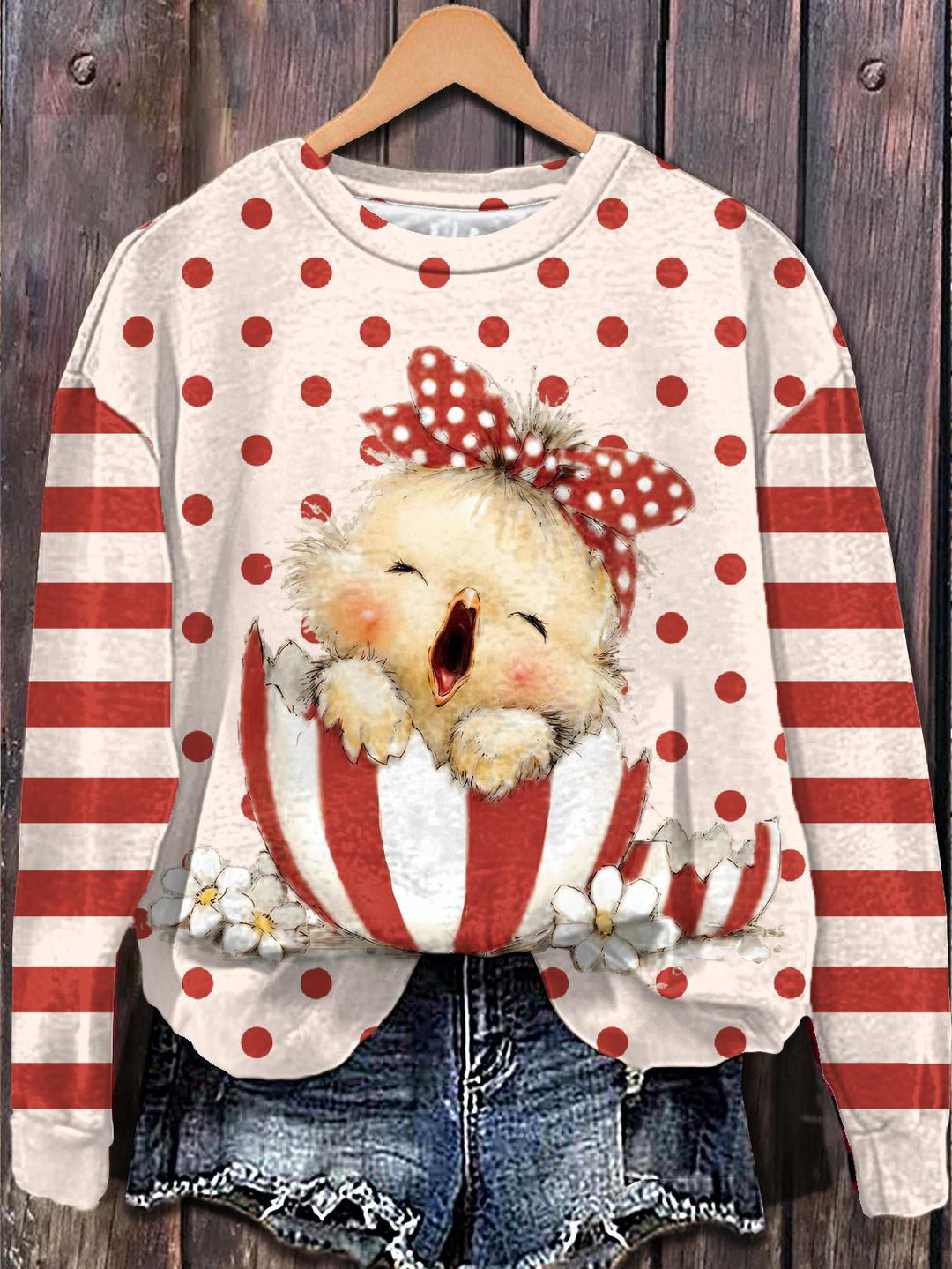 Cute Hatching Chick Printed Long Sleeve Casual Top