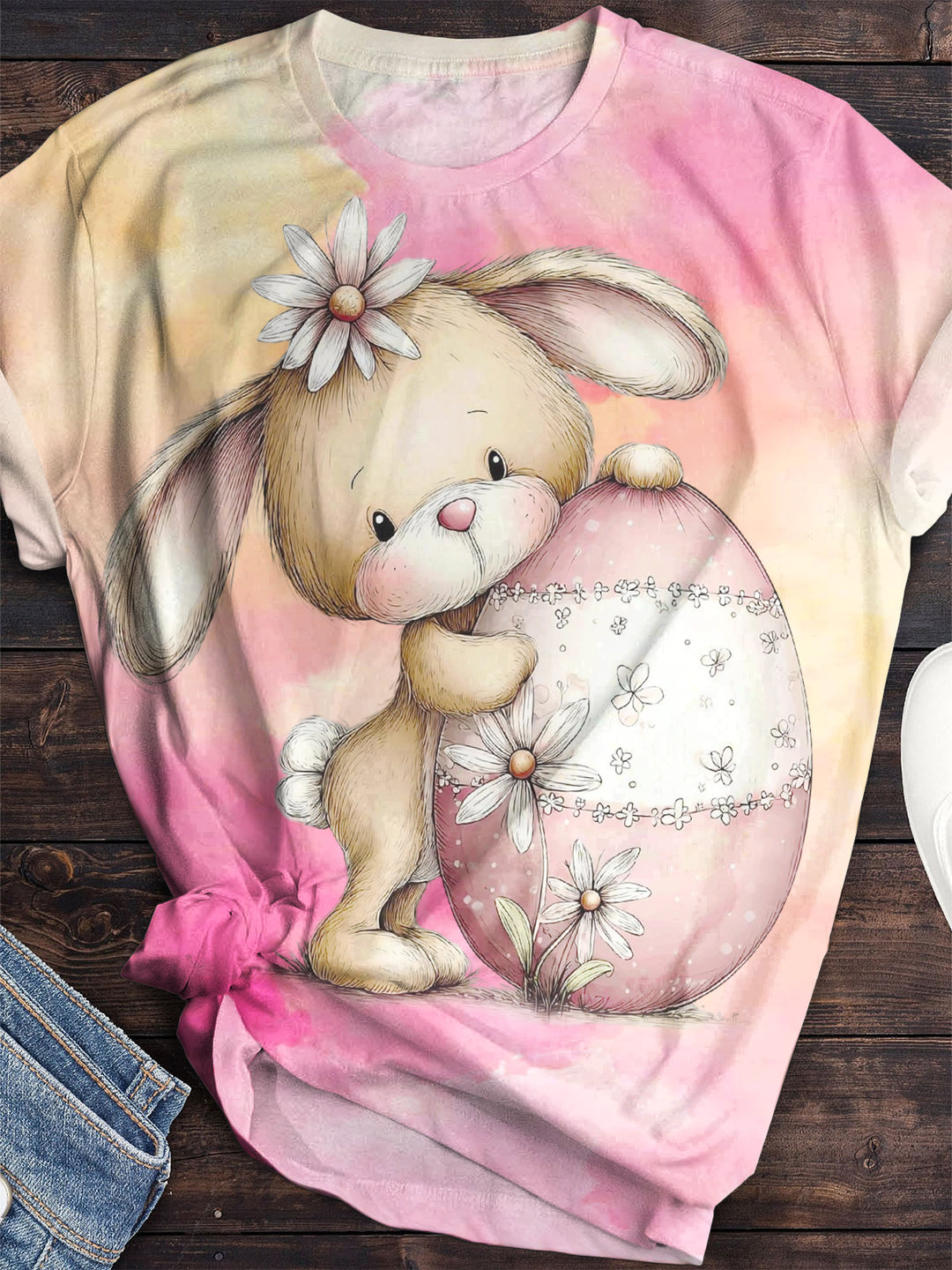 Easter Day Egg Bunny Print Crew Neck T-shirt
