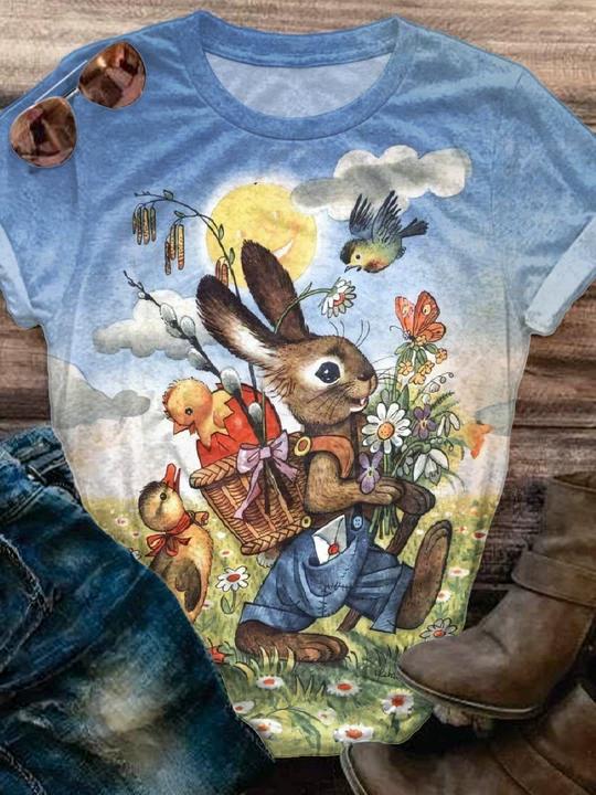 Easter Day Cute Bunny Print Crew Neck T-shirt