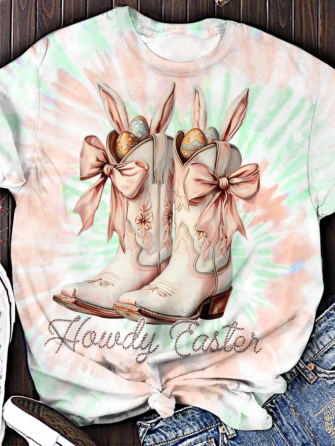 Tie Dye Rabbit Ear Boots Crew Neck T-shirt