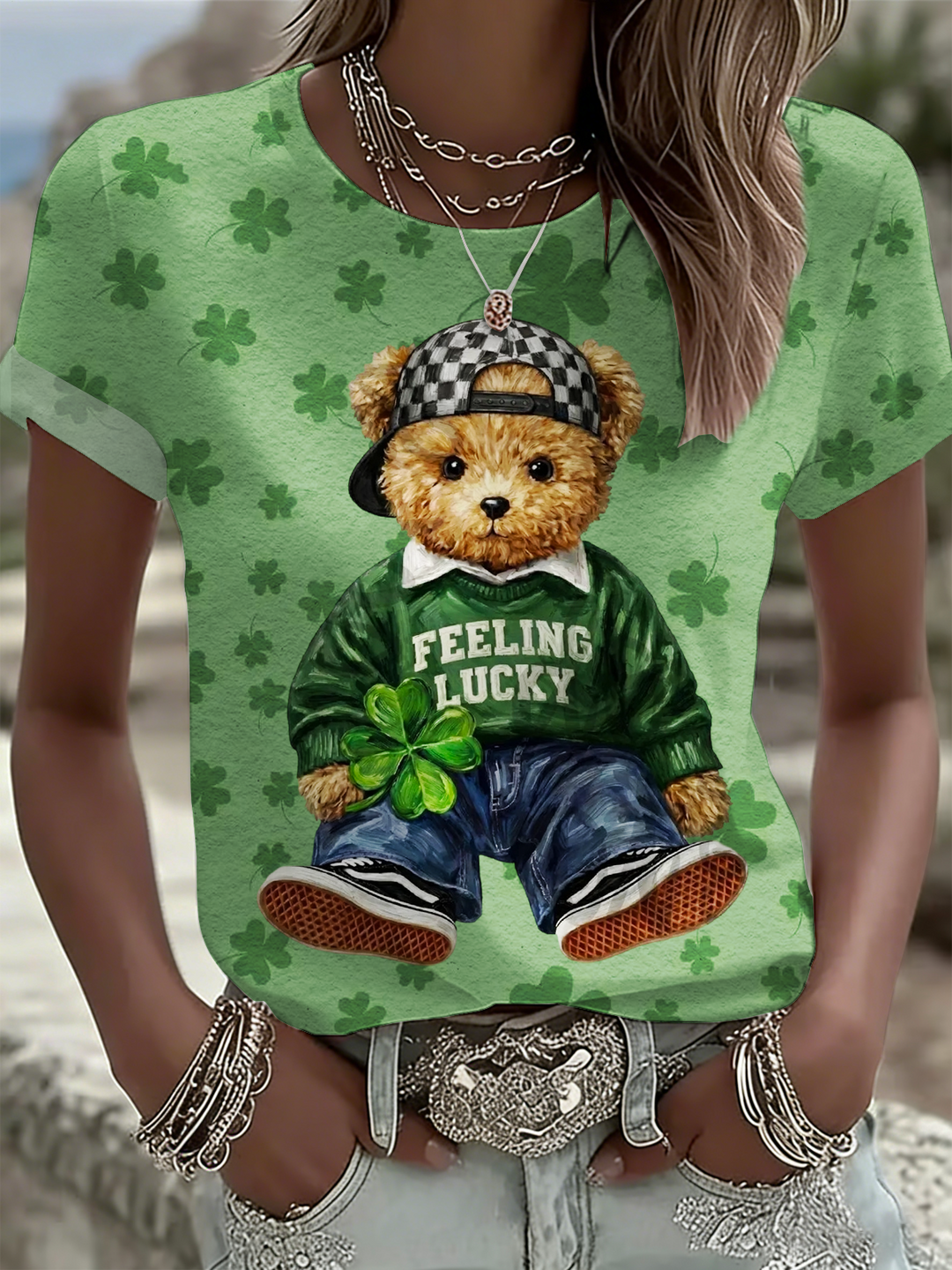 Feeling Lucky Teddy Bear St. Patrick's Day Crew Neck T-shirt