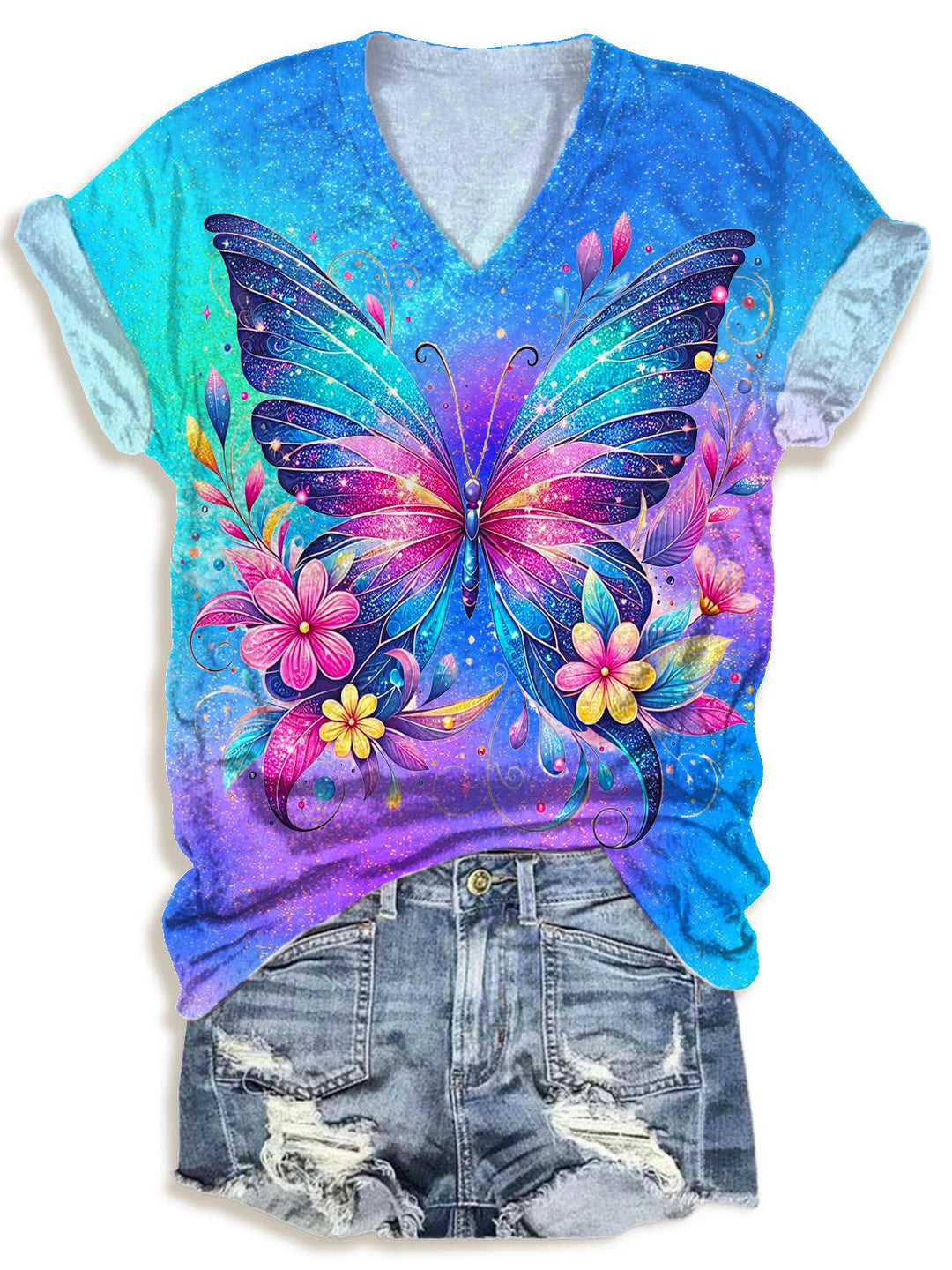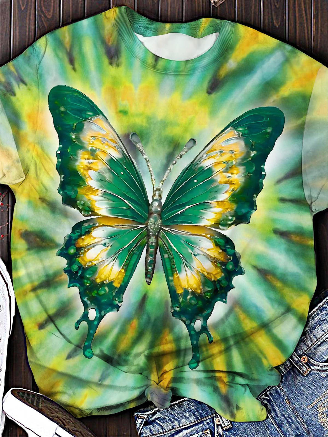 Retro Tie Dyeing Butterfly Crew Neck T-shirt
