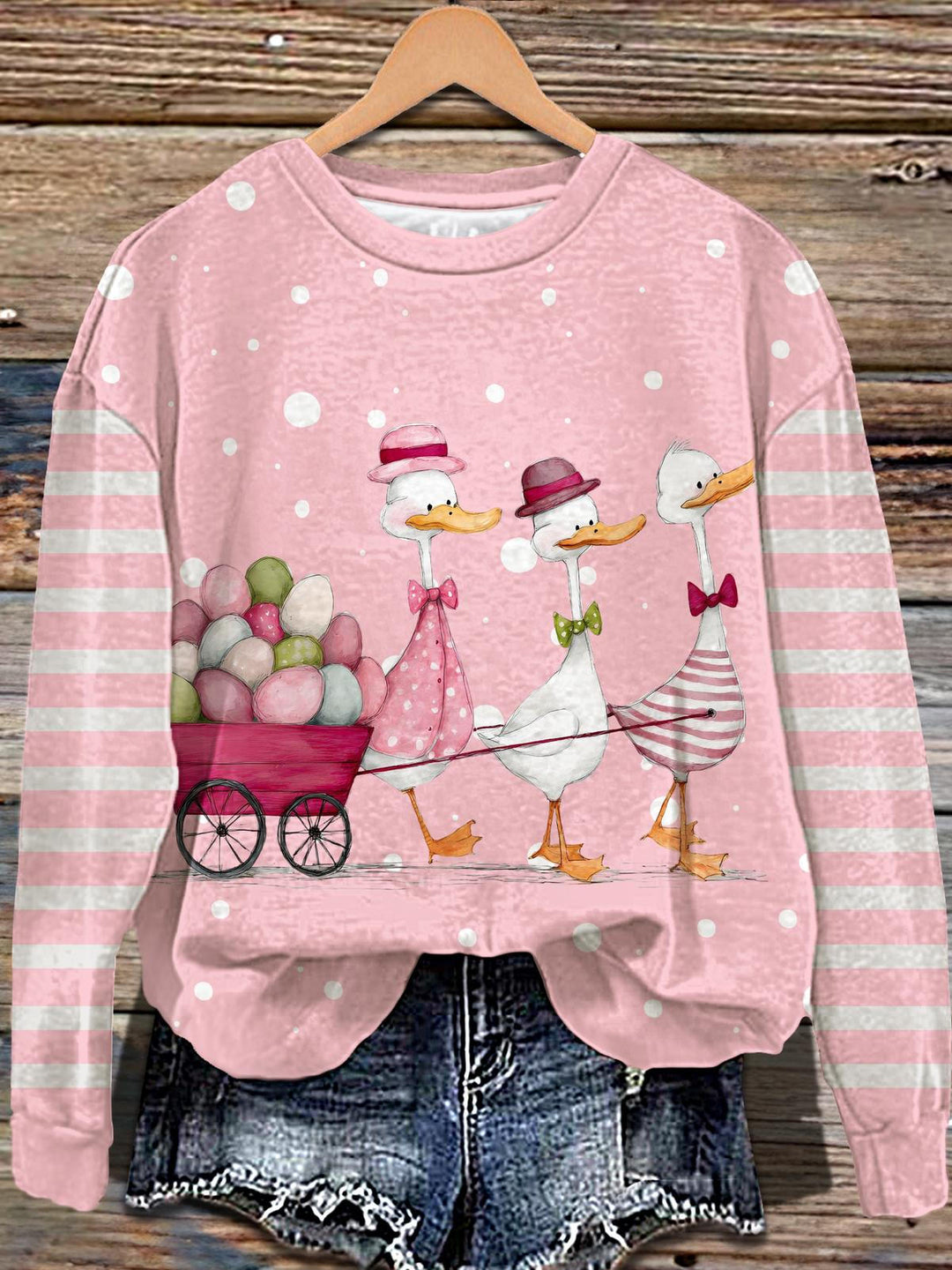 Cute Striped Duck Printed Long Sleeve Casual Top