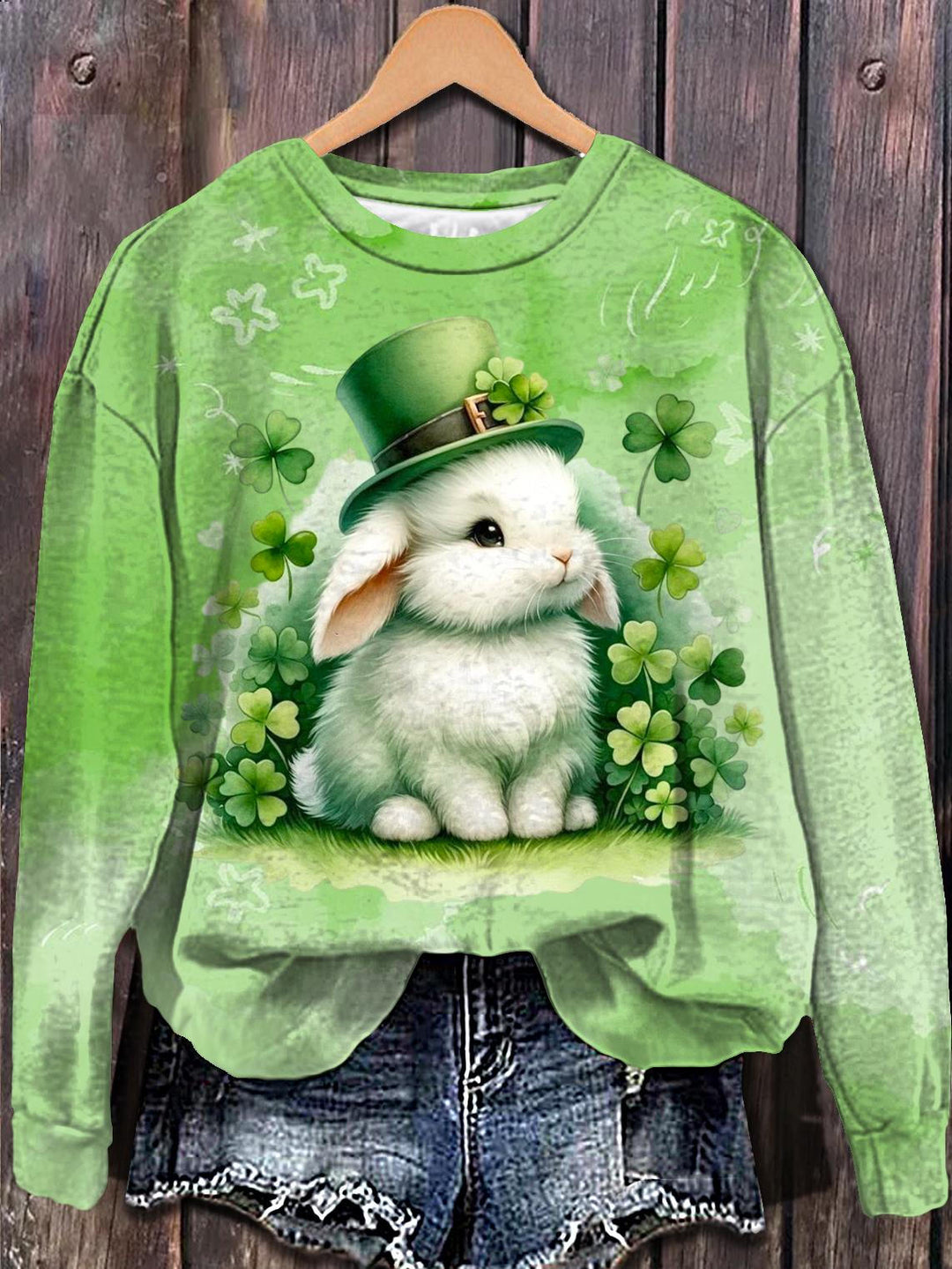 St. Patrick's Day Cute Bunny Printed Long Sleeve Casual Top