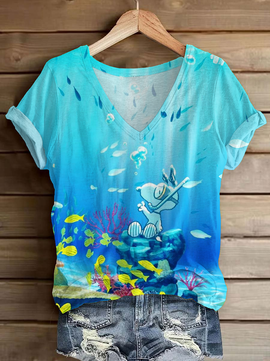 Fun-filled Vacation At Snoopy Underwater World V-neck T-Shirt