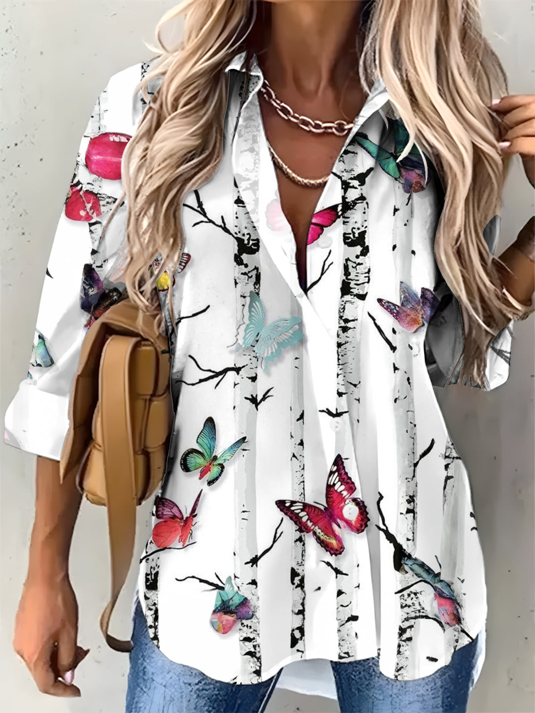 Vertical Pattern Butterfly Women's Printed Casual Shirt