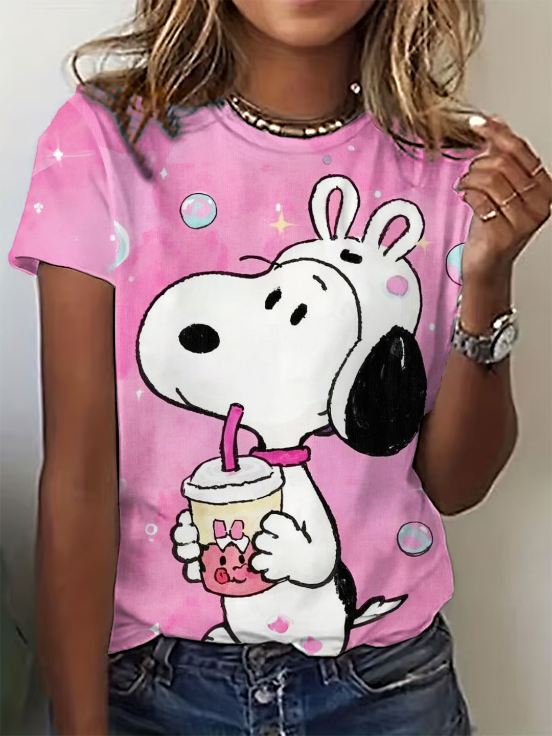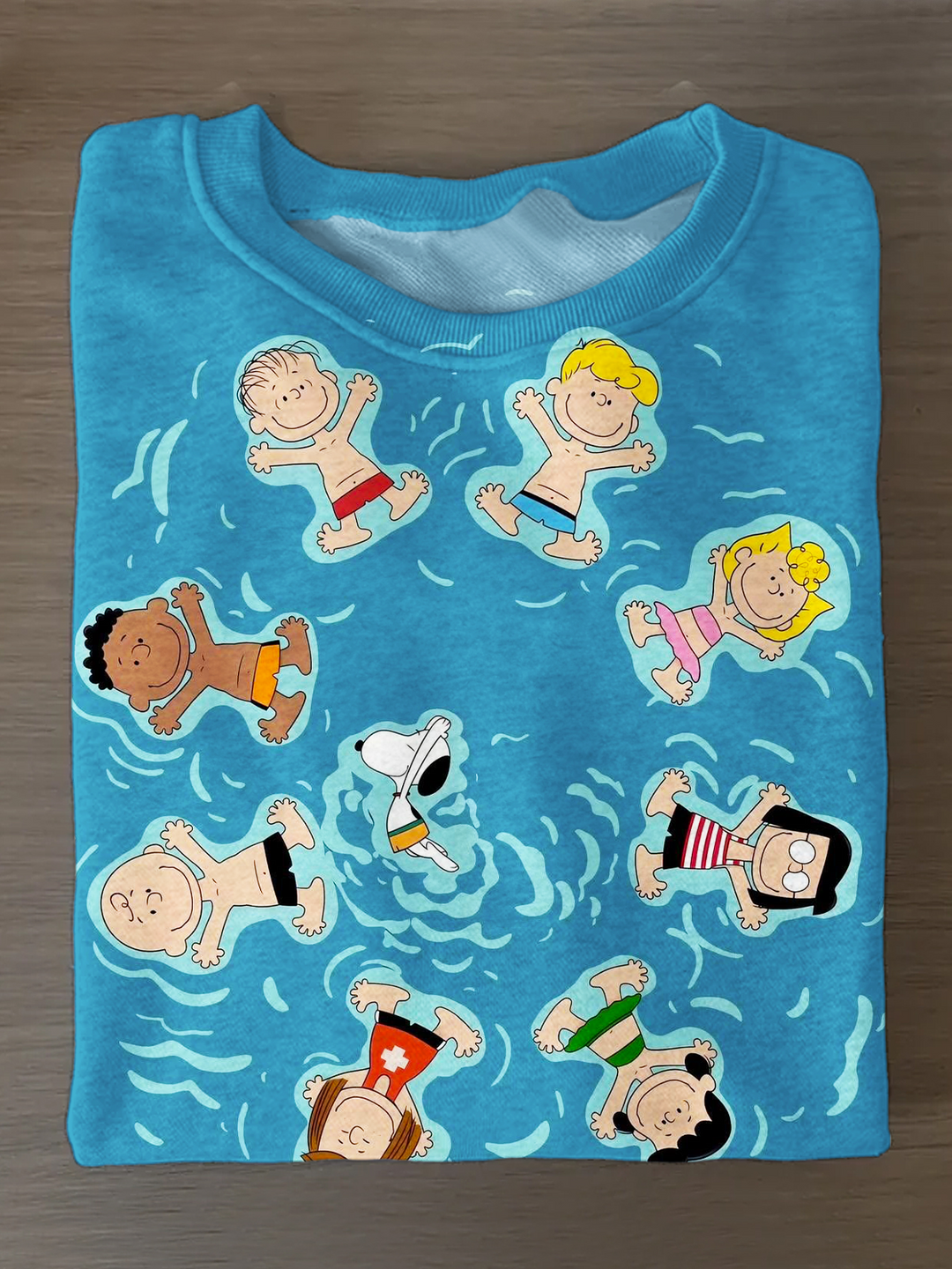 Cute Summer Vacation Snoopy Friends Trips Printed Long Sleeve Casual Top