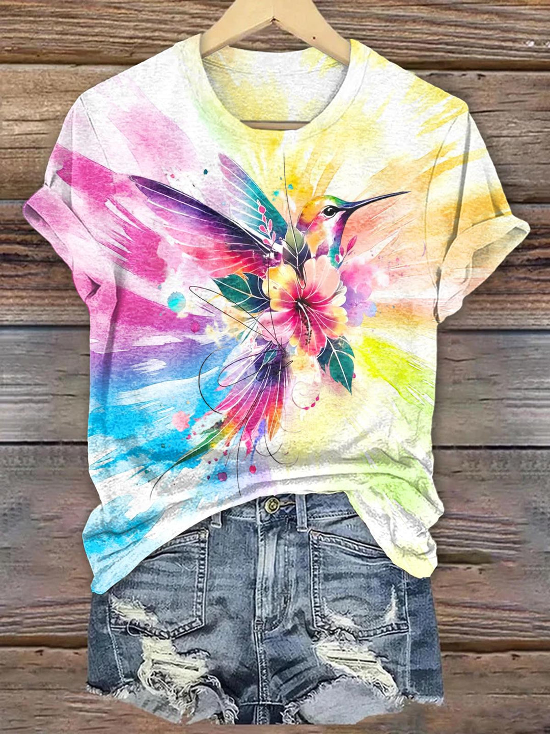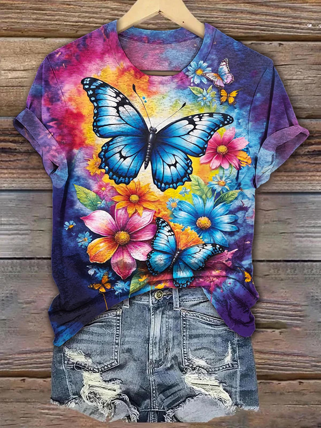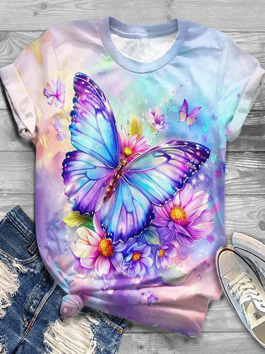 Spring and Summer Floral and Butterfly Collage Ladies Loose Short Sleeve T-shirt