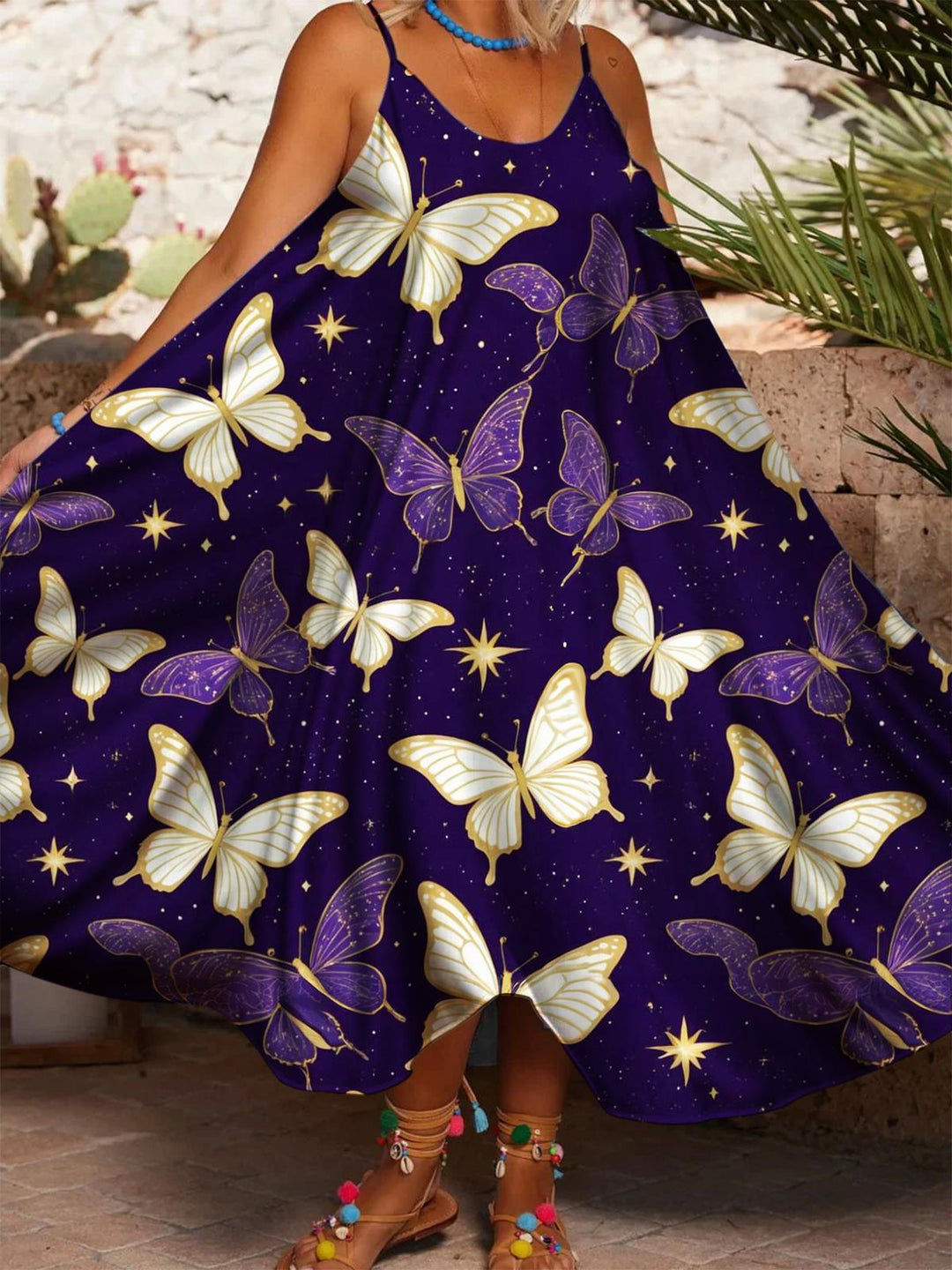 Elegant Two tone Butterfly Women's Printed Casual Spaghetti Strap Dress