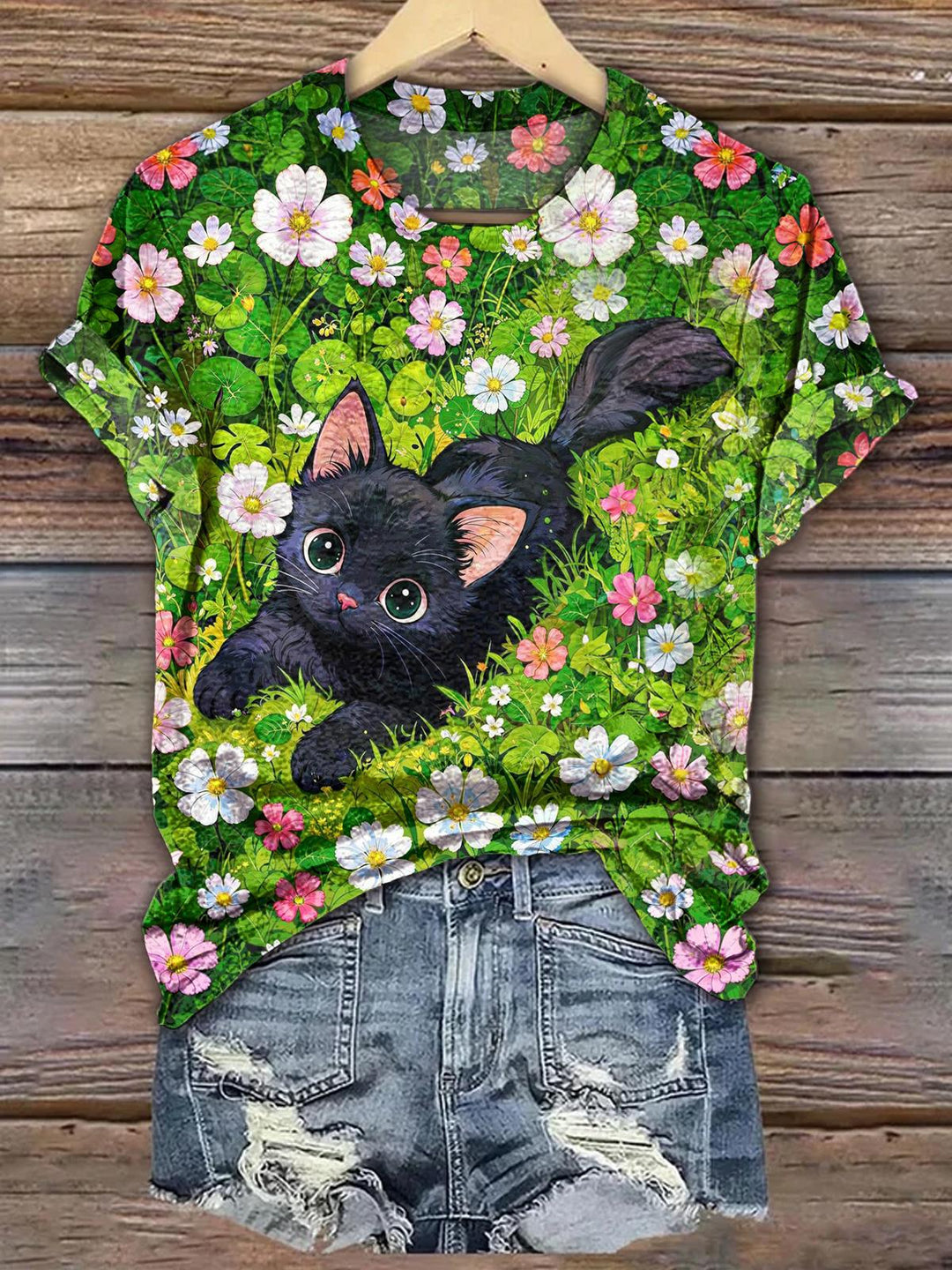 Spring And Summer Flowers Cute Cats V-neck T-Shirt
