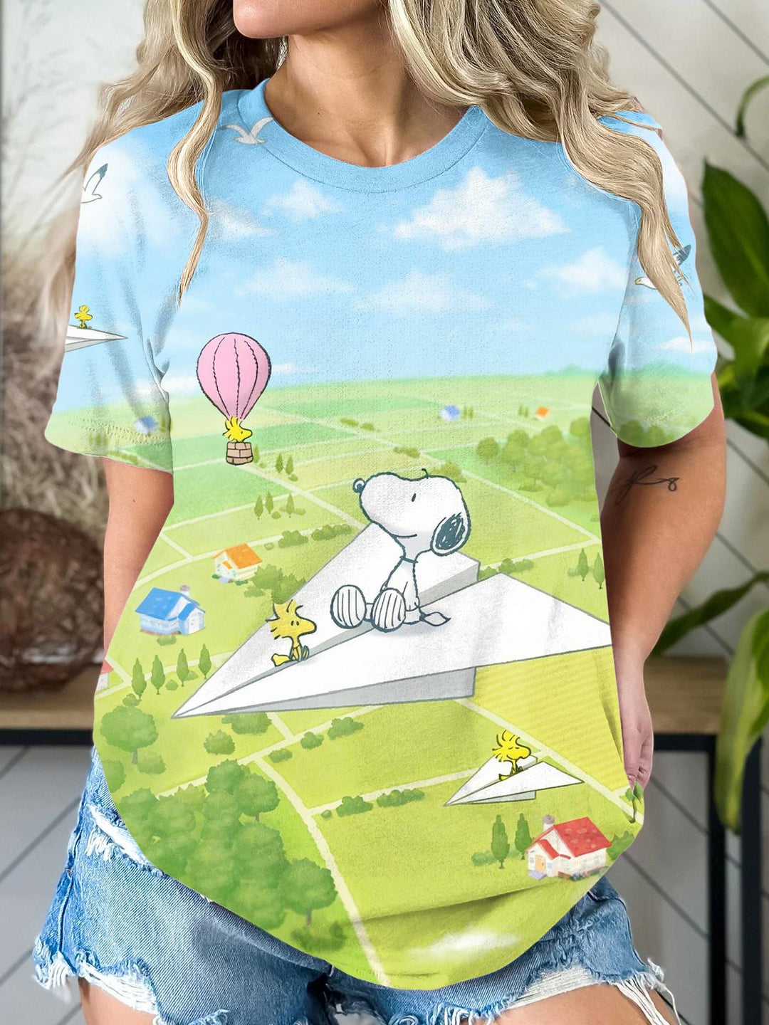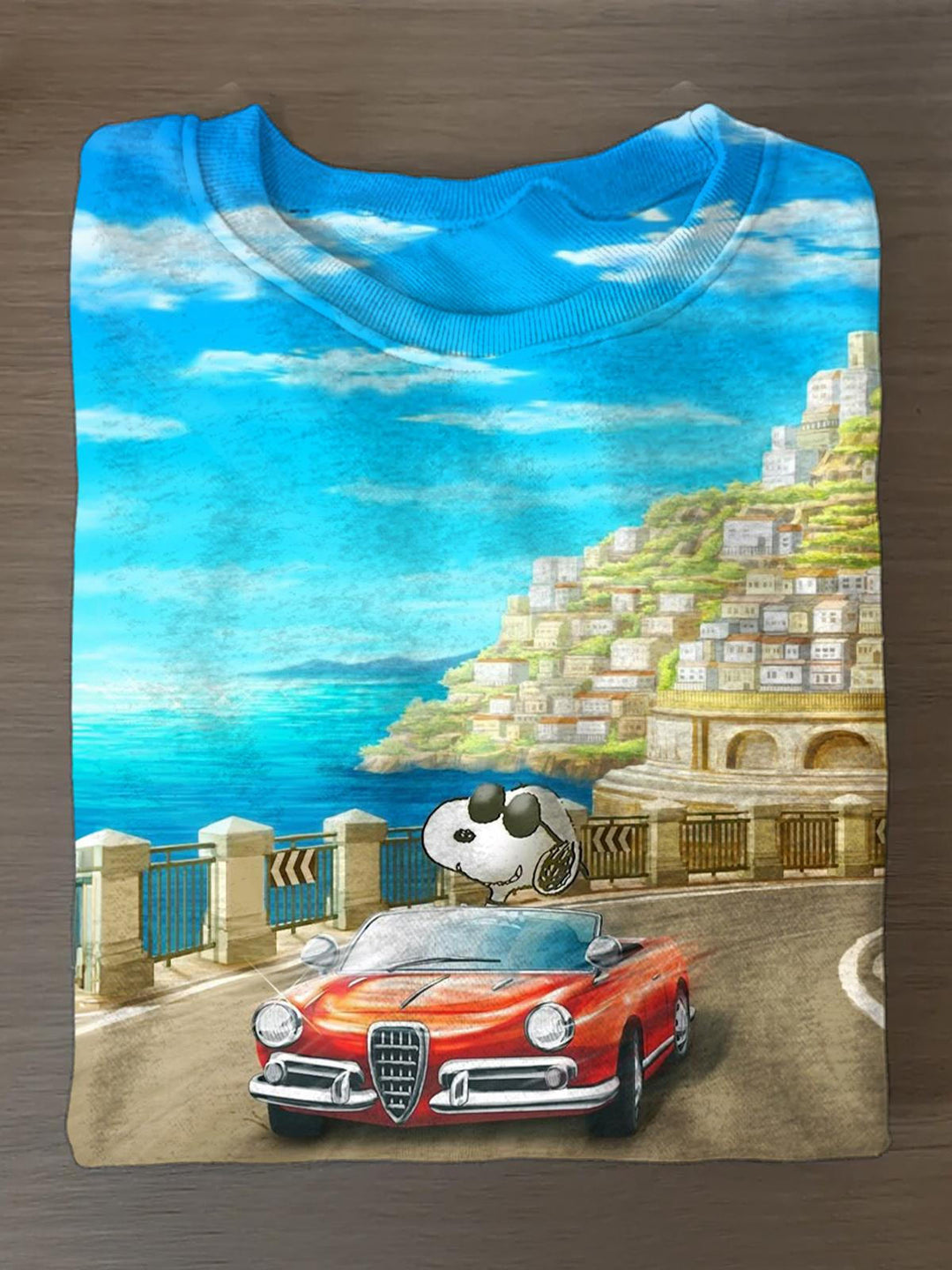 Snoopy Self Drive Vacation Printed Long Sleeve Casual Top