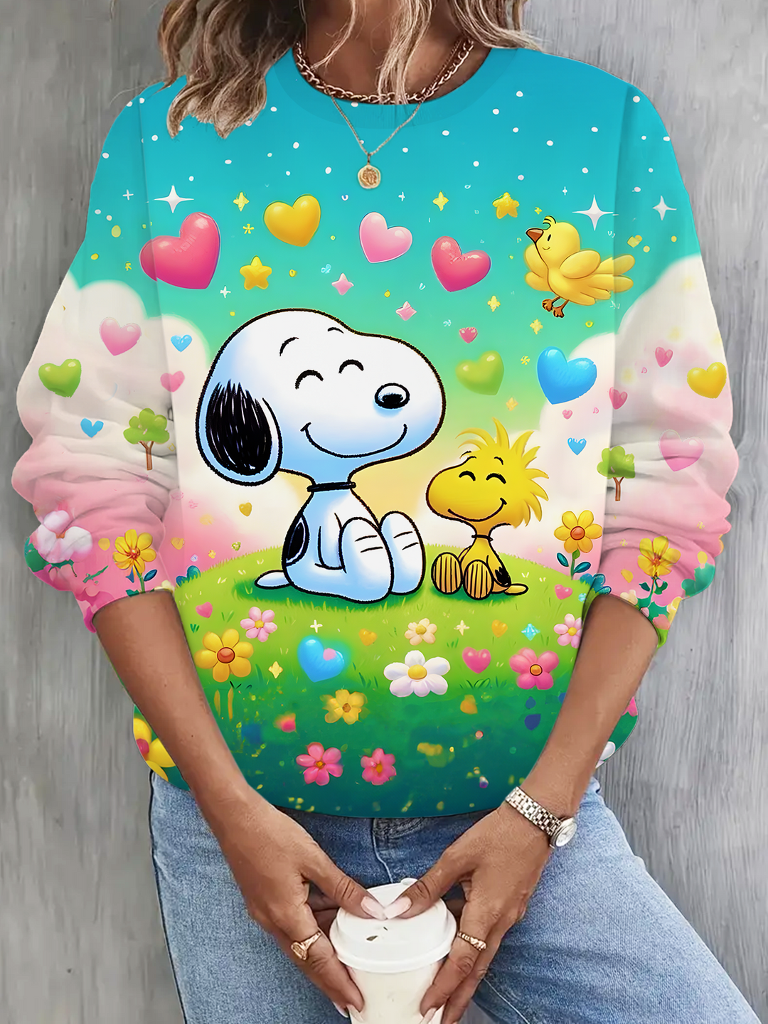 Snoopy With Birds Flowers Scenery Love Long Sleeve Casual Top